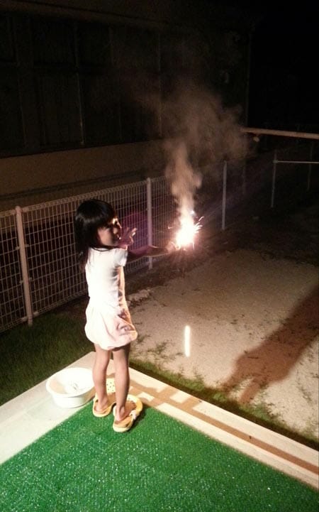我が家では毎日風呂上がりにカキ氷と花火(4本程度ですが)