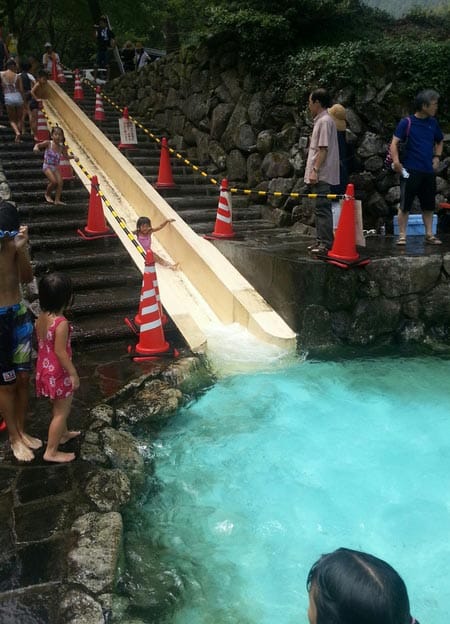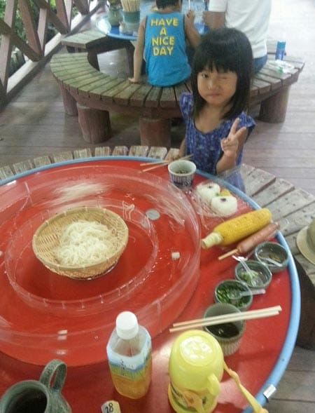 名物の?そうめん流しやとても冷たいプールで