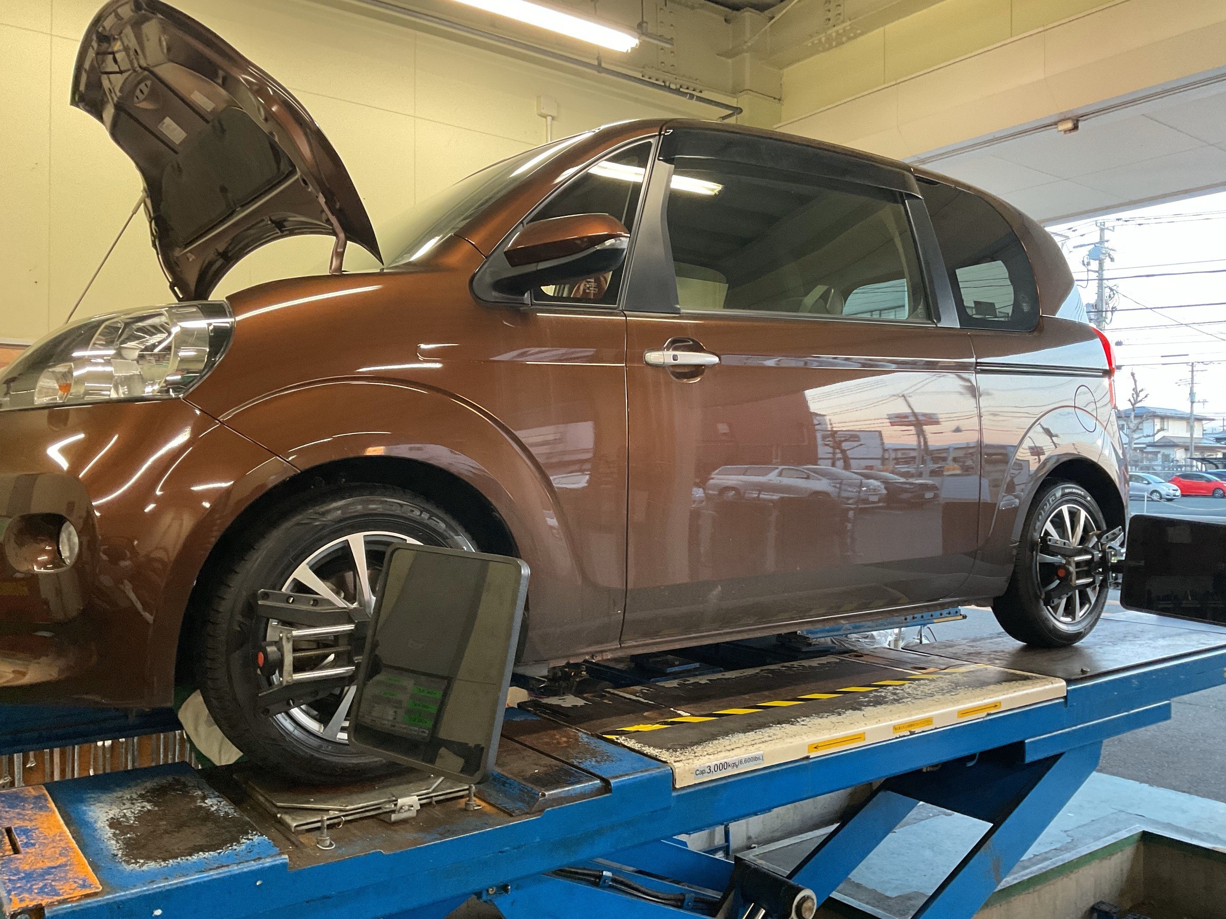 【トヨタ ポルテ (DBA-KSP141型)】タイヤ取り付け作業 ECOPIA NH200C 175/65R15 アライメント調整