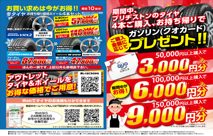イベント開催中のお知らせ ポスト 2023年10月9日 日頃はタイヤ館箕輪をご利用いただきまして誠にありがとうございます。 10/7~30日まで、冬タイヤの早期予約会を行っております。 冬タイヤのご準備がまだ済んでいないお客様はこの機会にぜひご準備をお願い致します。 スタッフ一同皆様のご来店を心よりお待ちしております。 担当:河野