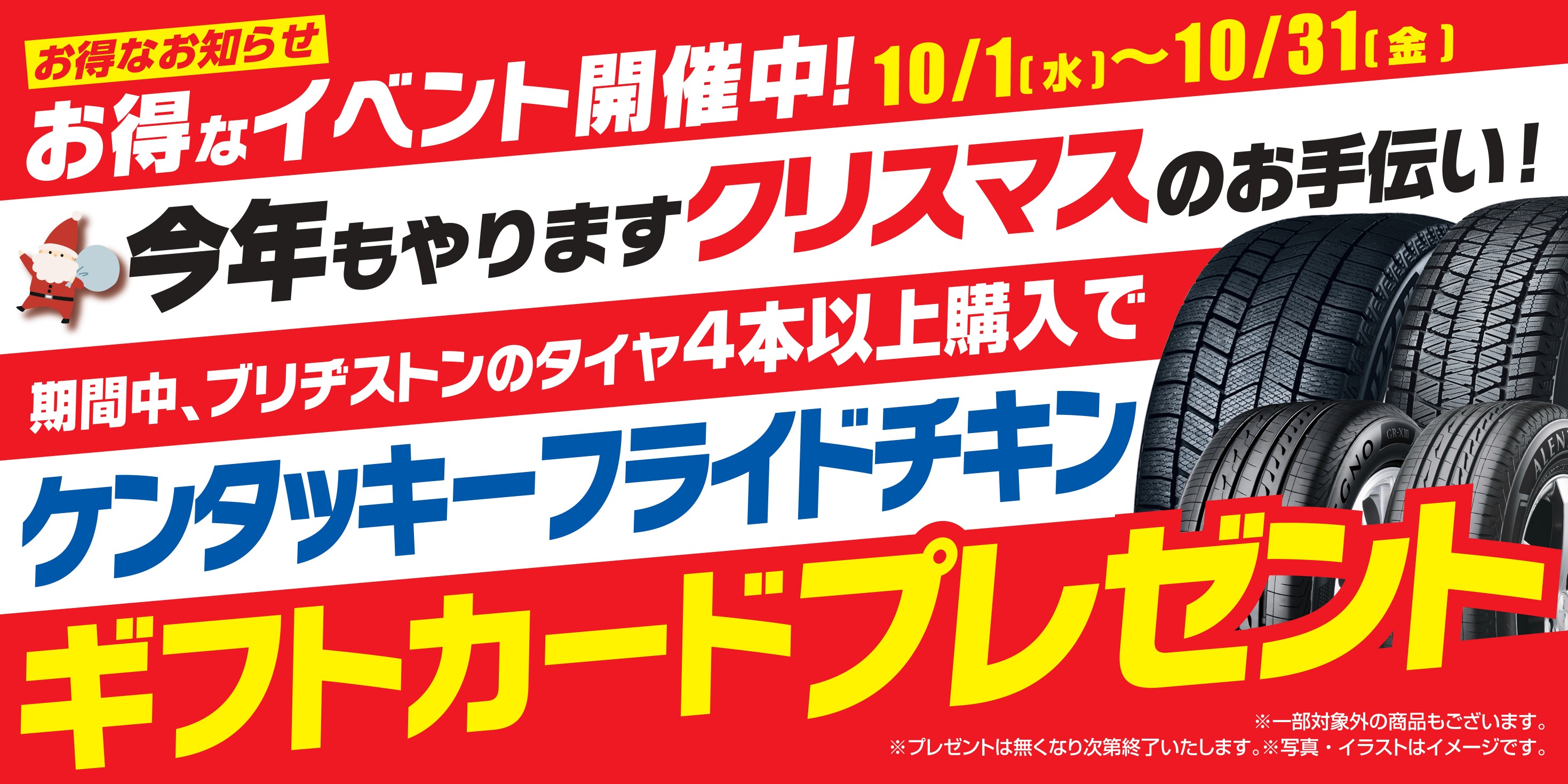 タイヤご購入のお客様にケンタッキー・フライド・チキンのギフトカードをプレゼント。