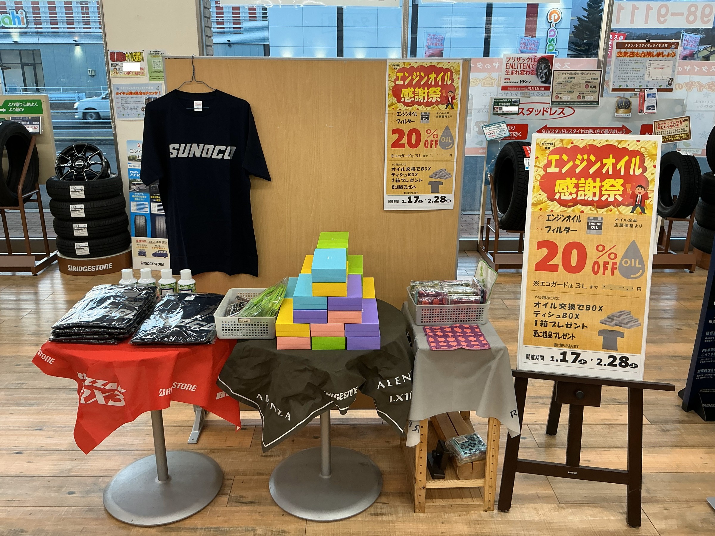 オイル交換のお客様にティッシュボックスひと箱+粗品プレゼント。