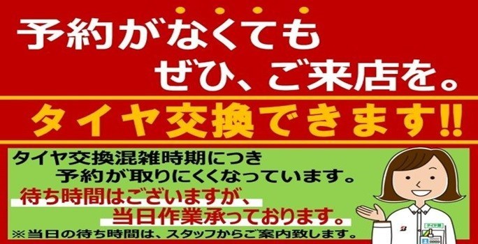 タイヤ履き替え【ご予約なし】でも作業ご相談ください!