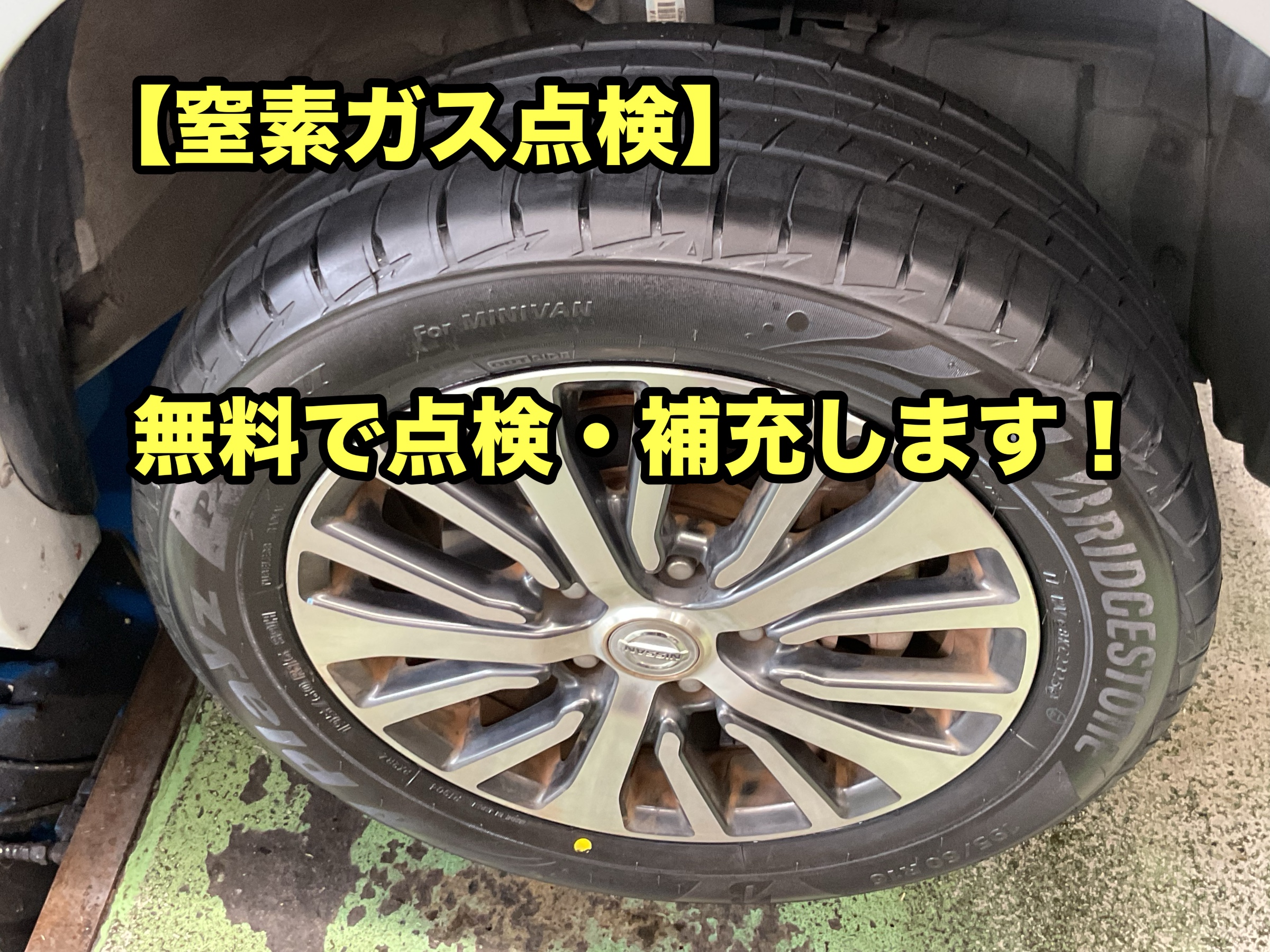【窒素ガス点検】無料で点検・補充します! ポスト 2025年8月17日 タイヤの空気は1か月で 約5~10%ほど自然低下します。 タイヤ館三鷹では 窒素ガスの補充を 無料にて実施しております。 当店で充填された方はもちろん 他店にて充填された方も 無料にて補充します!! ※抜き替えの場合は有料です。 窒素ガスは通常の空気より抜けにくいですが、 減らないわけではありません。 タイヤ交換のこの時期に点検して、 タイヤ長持ち&安心運転しませんか? ご来店お待ちしております。 タイヤ館 三鷹 住所:181-0004東京都三鷹市新川6-37-35 電話番号: 0422-40-6718 相談予約 タイヤ点検・安全点検/タイヤ履き替え/オイル交換/その他ピット作業の予約