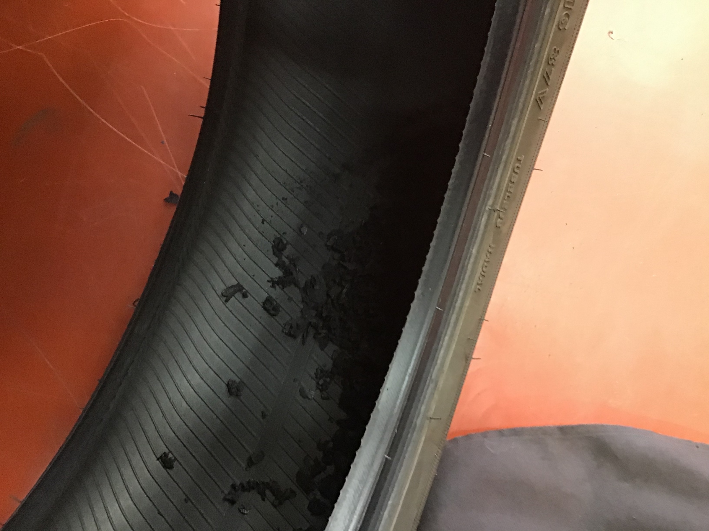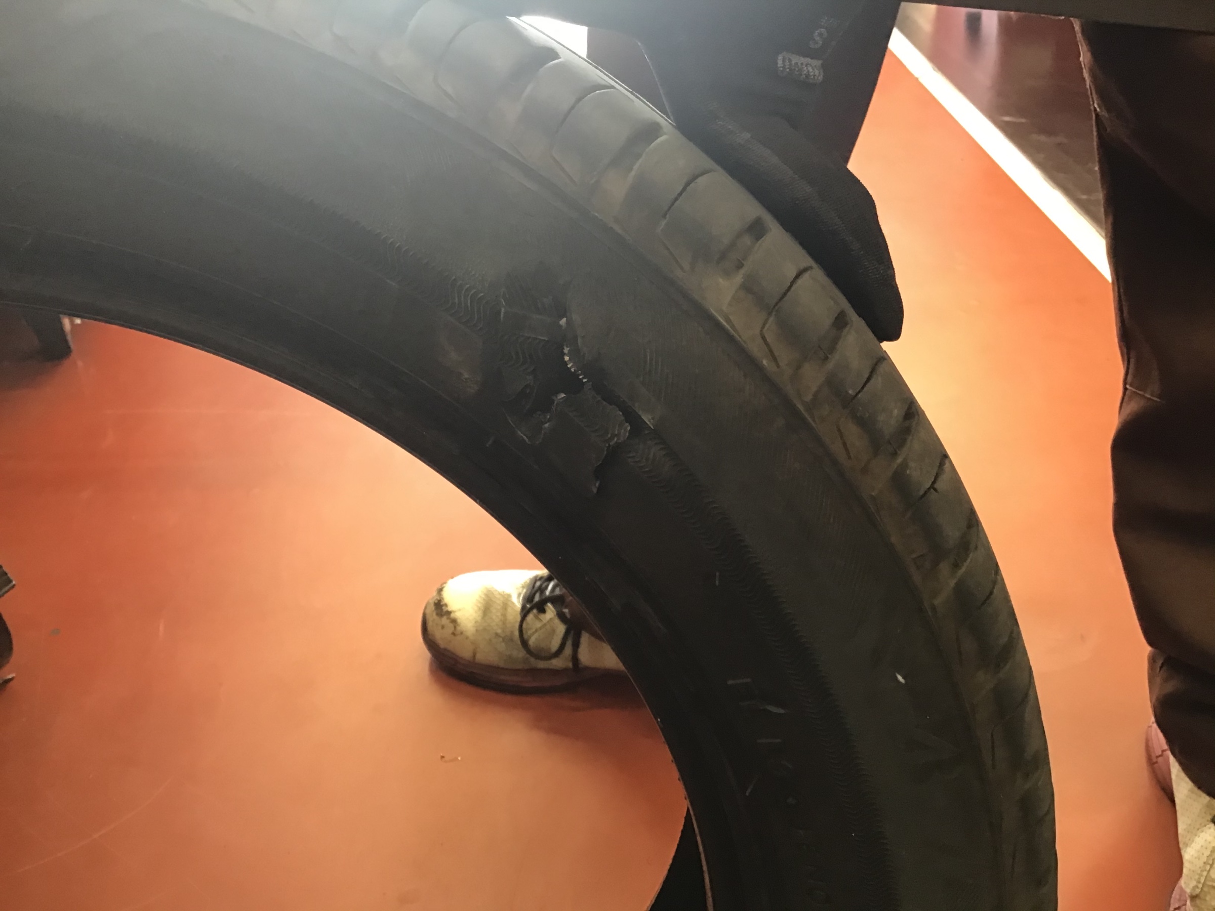 今回のパンクの原因は縁石にぶつけてしまったようで