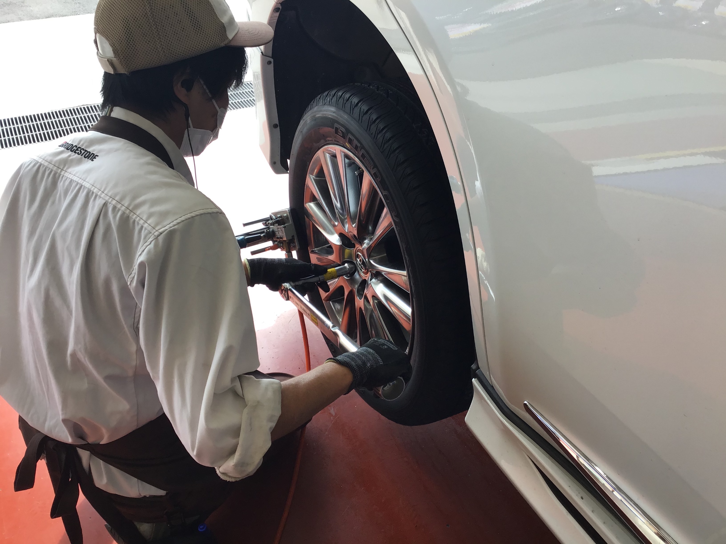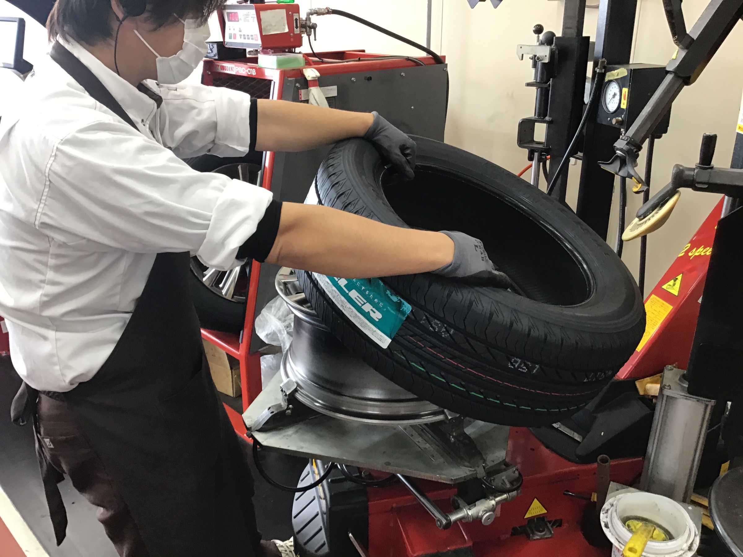 大きなタイヤサイズですがしっかりと交換作業が進んでいきます。