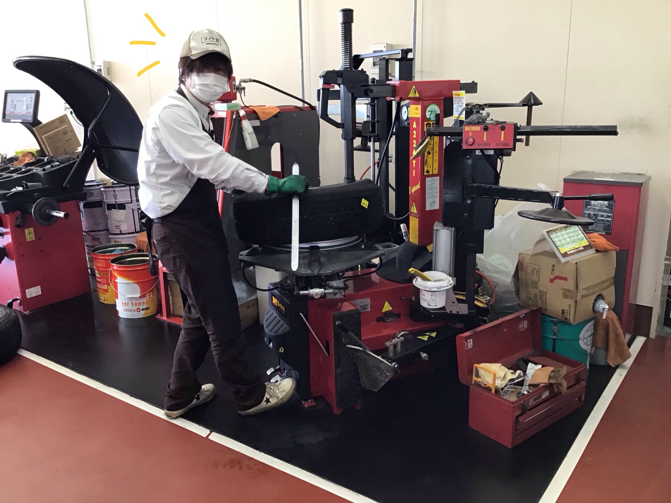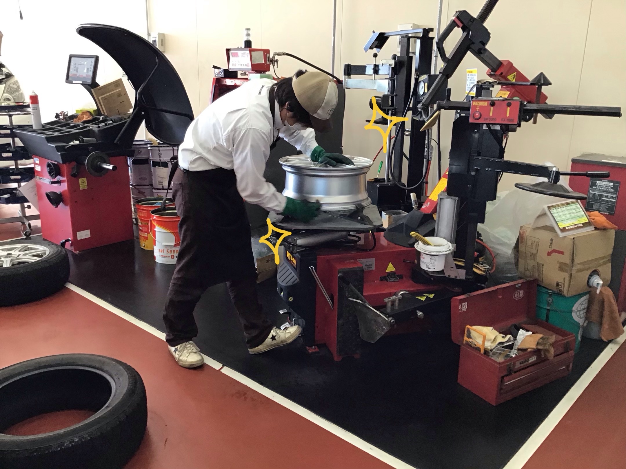 (新品タイヤを組み込んでいる所を撮れませんでした。。(´;ω;`))