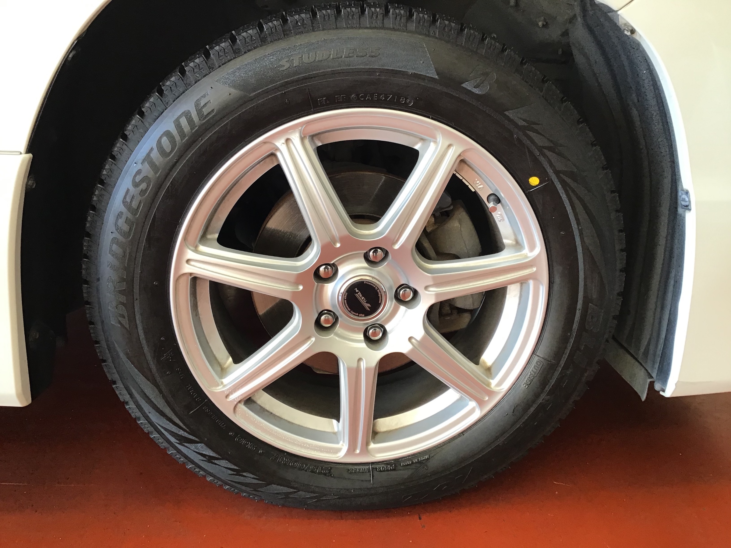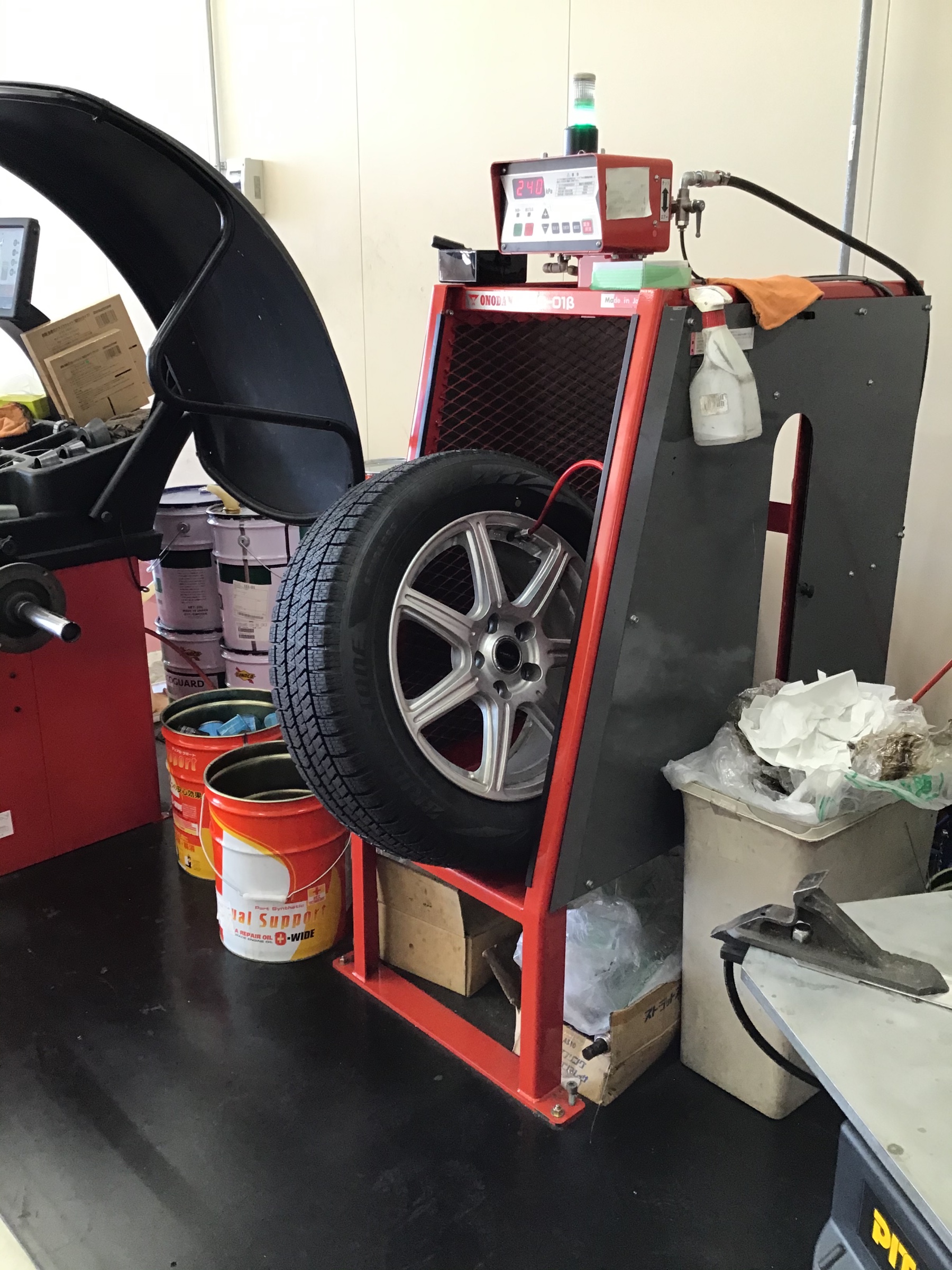 (この後、バランサーという機械でホイールバランスを合わせるのですが、撮り忘れてしまいました。。)