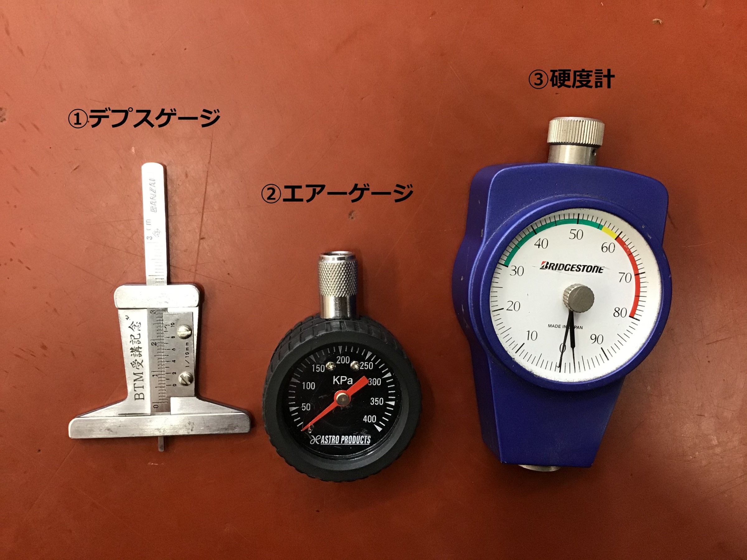 スタッドレスタイヤの点検には③の硬度計がとても重要なアイテムです!!