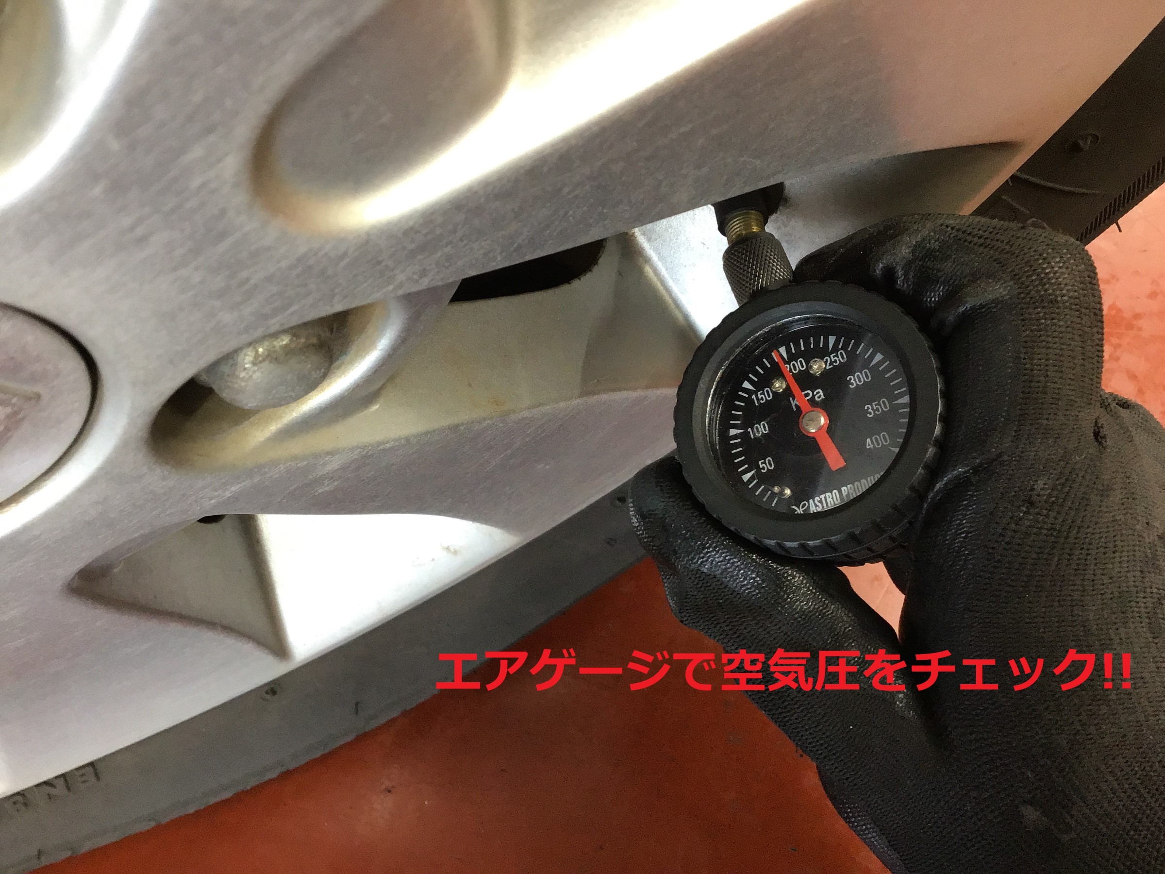 タイヤは自然に空気が減るものです。保管中にどのくらい減っていたのかを点検します!