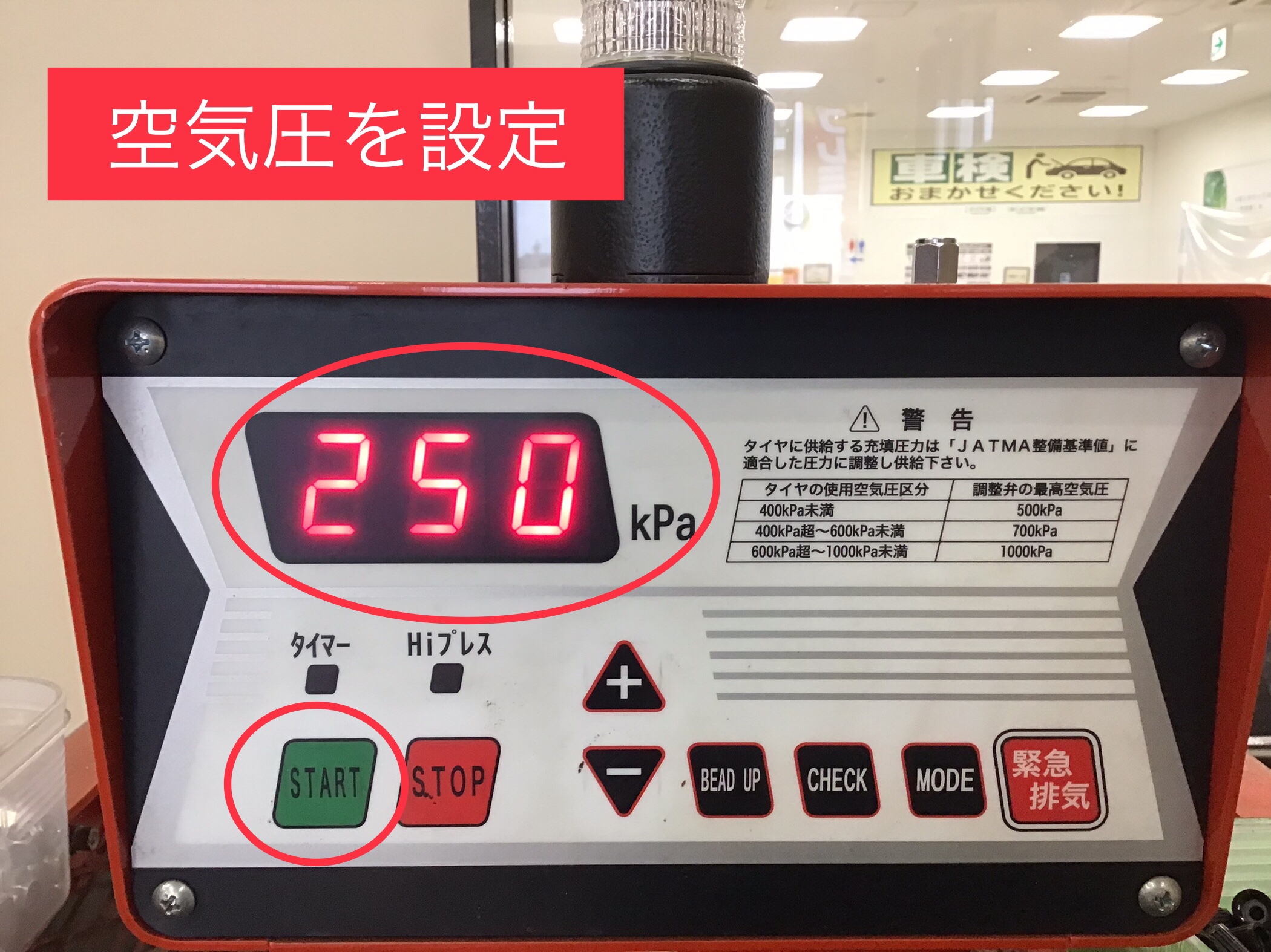 まずは指定空気圧に設定します!