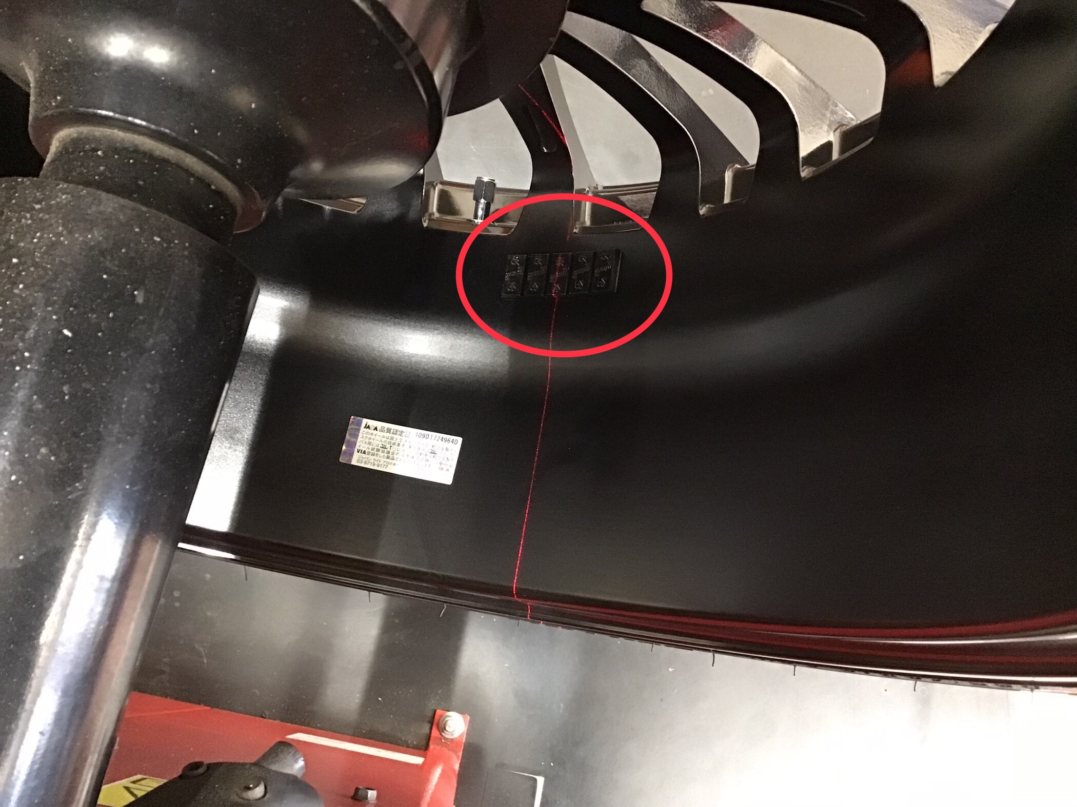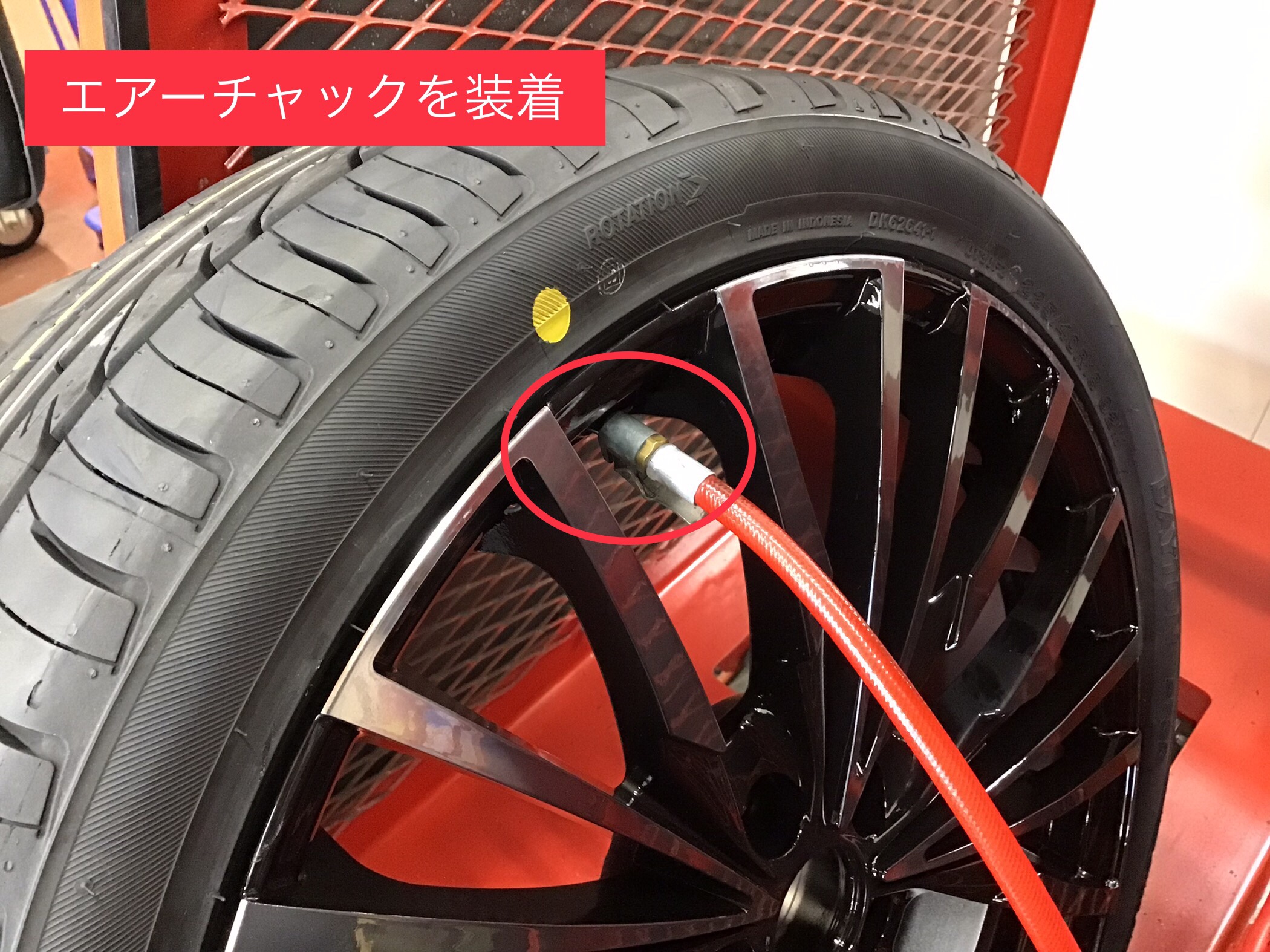 それぞれ指定の場所へ貼り付け再度タイヤを回転させて行きます!すると……