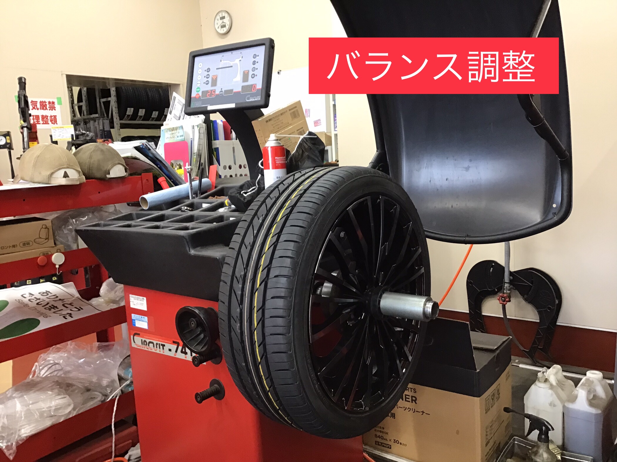 ここで営業です!!!(^-^)当店はバランスウェイトにもこだわります!