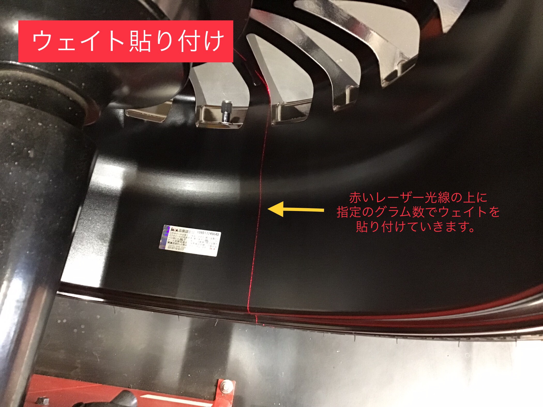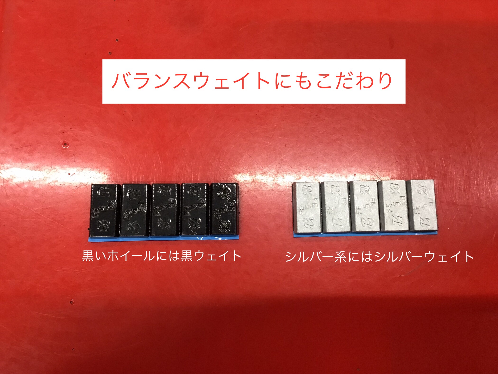 今回は黒いホイールなので黒いウェイトで見た目もちゃんと仕上げます!
