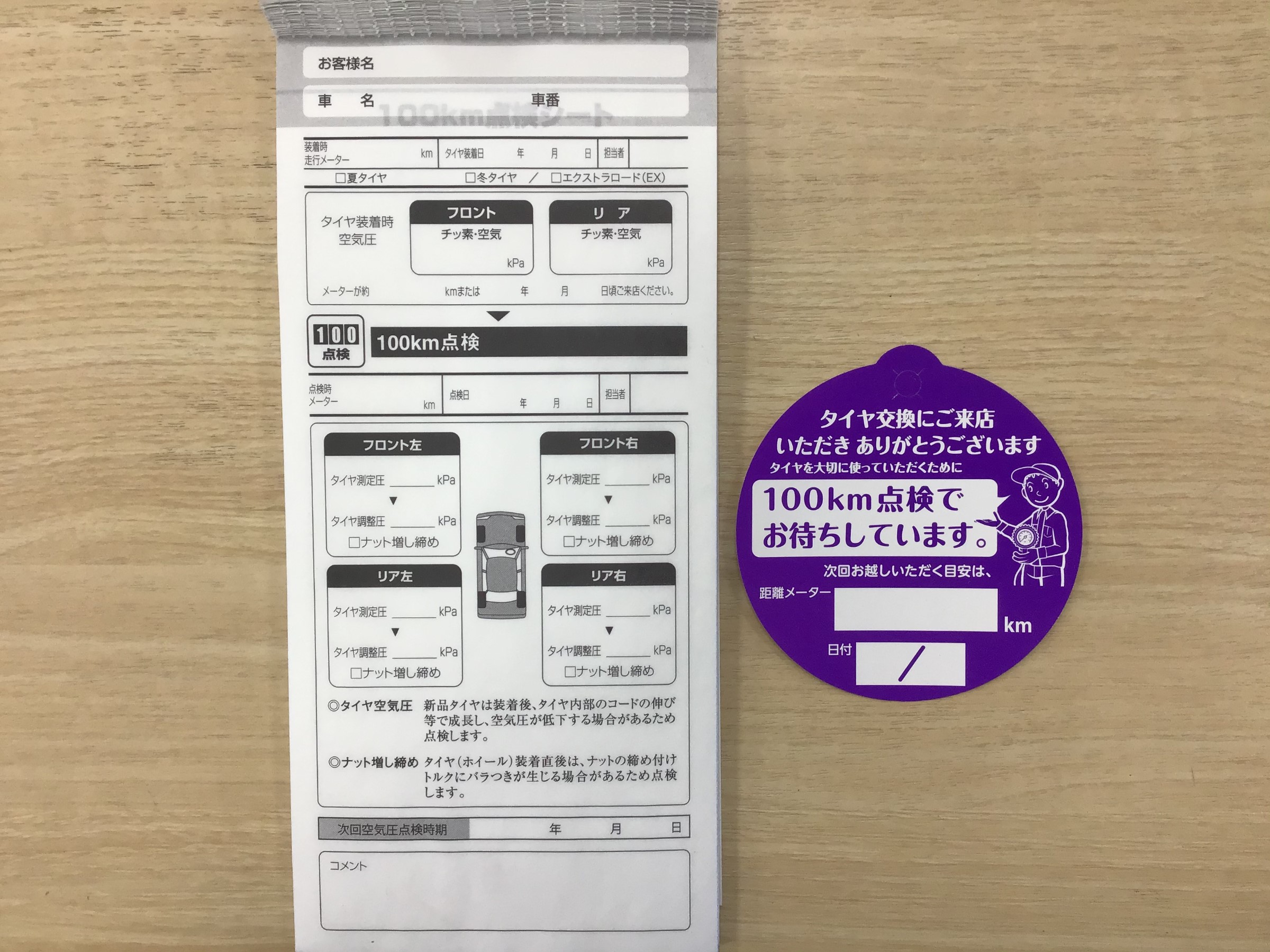 100キロ点検は、タイヤをご購入頂いたお客様へのアフターサービスで