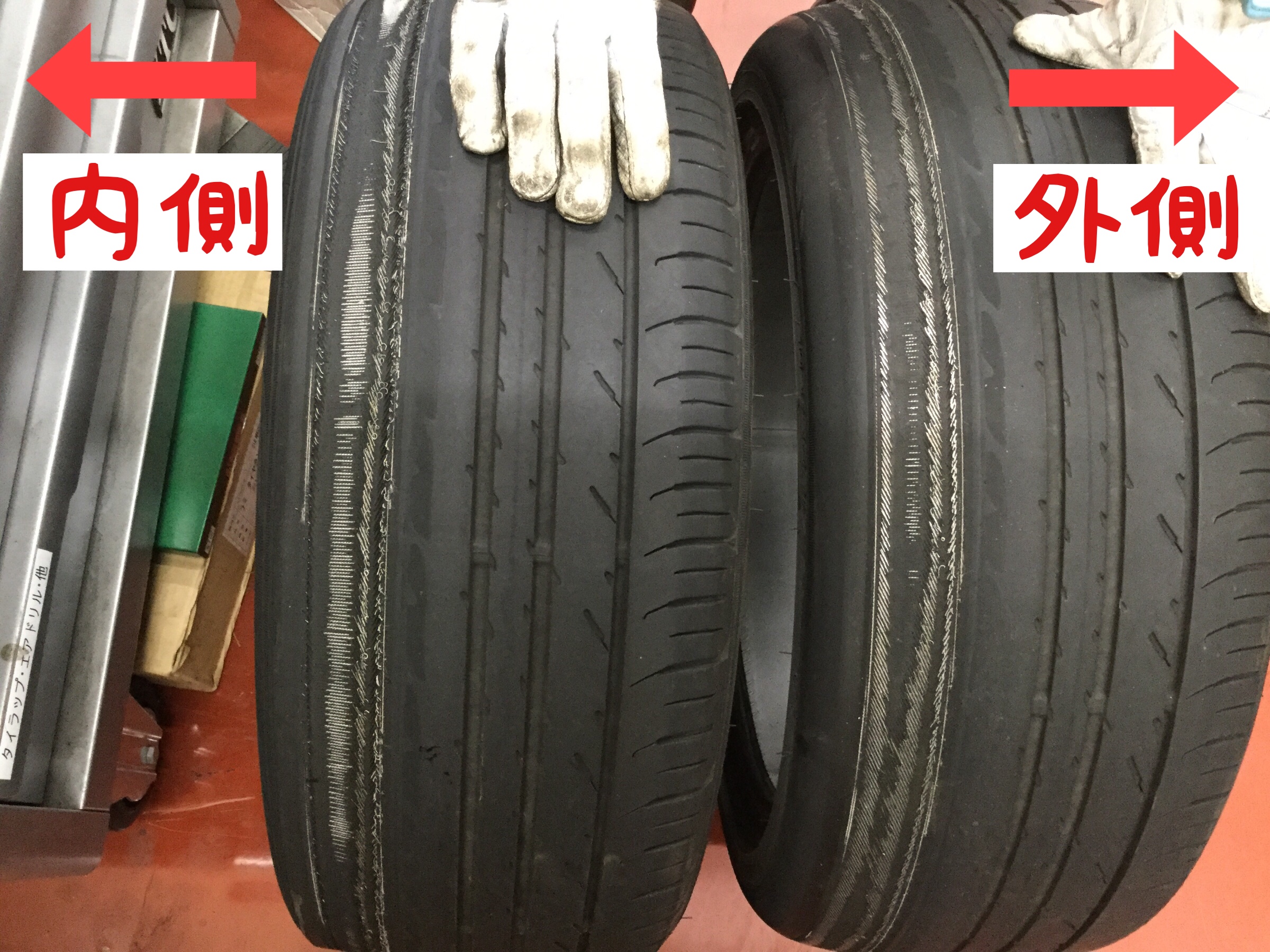 今回はお客様が違和感を感じ点検をしたおかげで事故を防ぐことができましたが、内側の異常摩耗はなかなか気づきにくいものです。