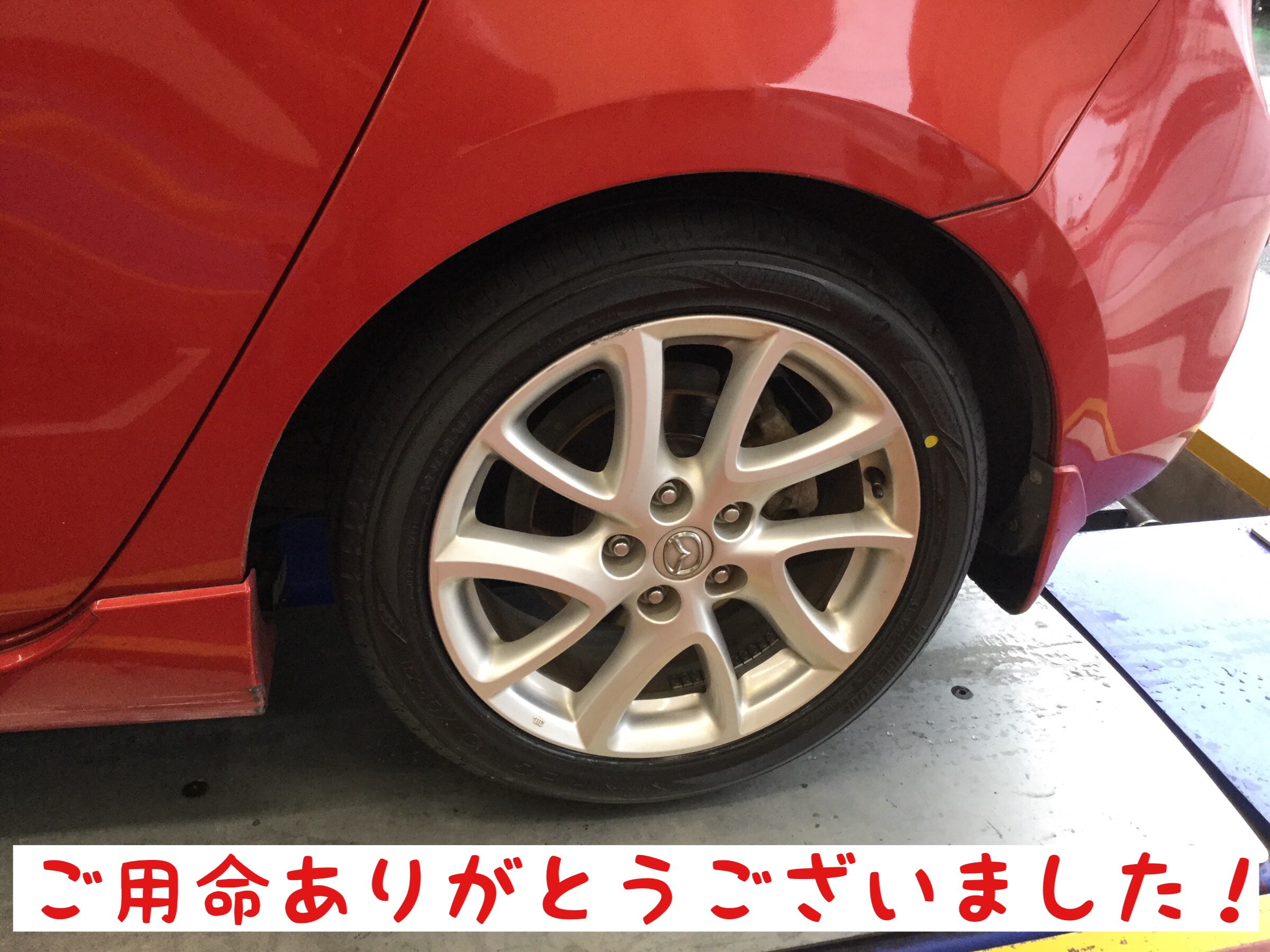 本日はアクセラにお乗りのお客様よりパンク点検のご依頼をいただきました。