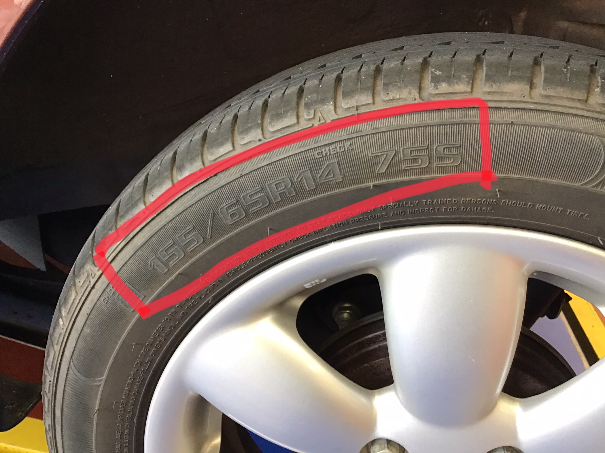 155/65R14 がこちらのお車のタイヤサイズになります。