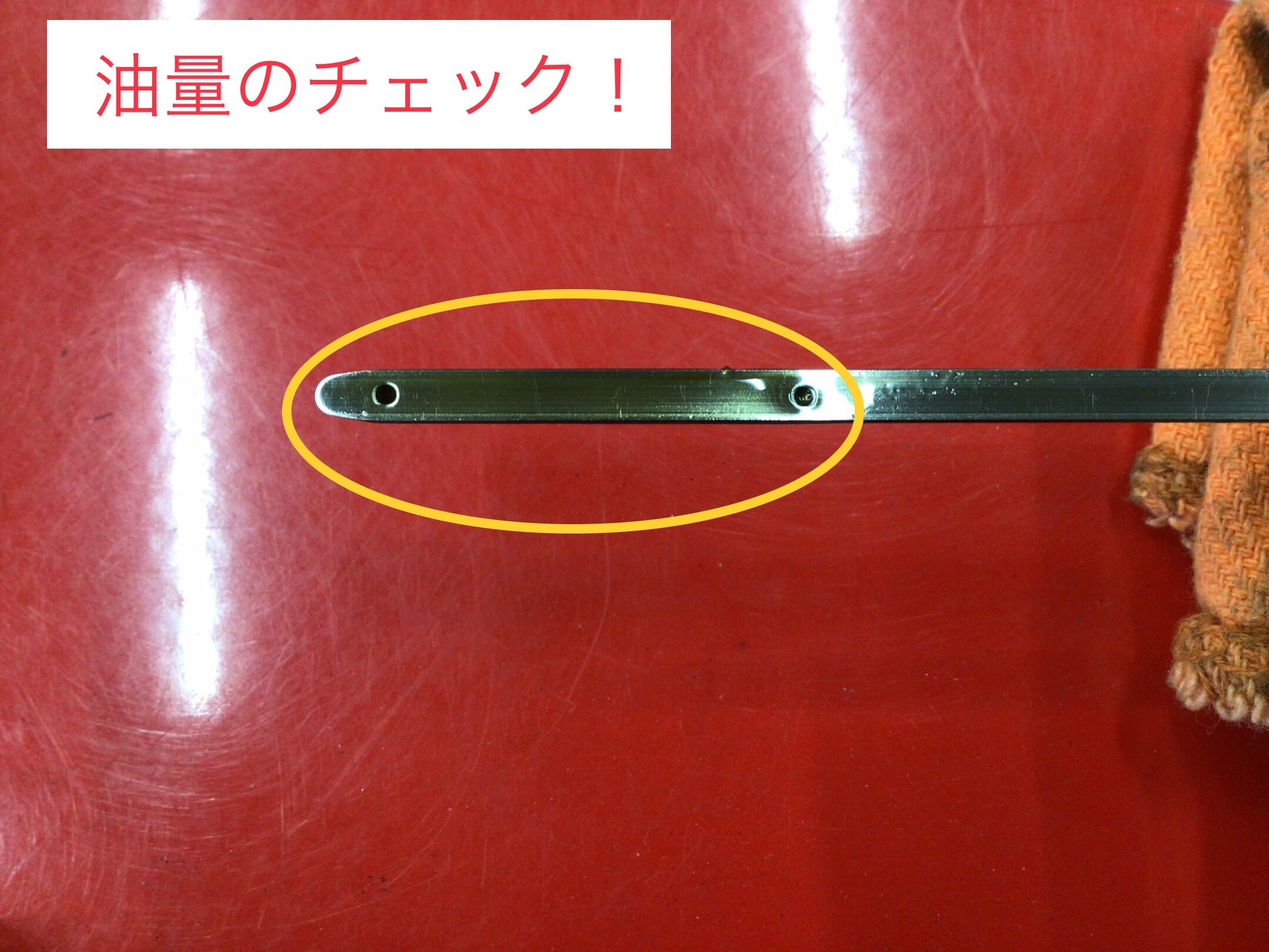 レベルゲージで油量の確認!
