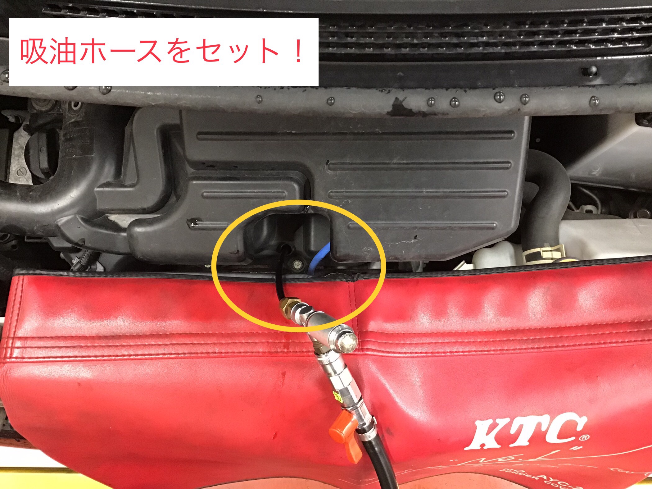 オイルゲージを外して吸油ホースと交換!