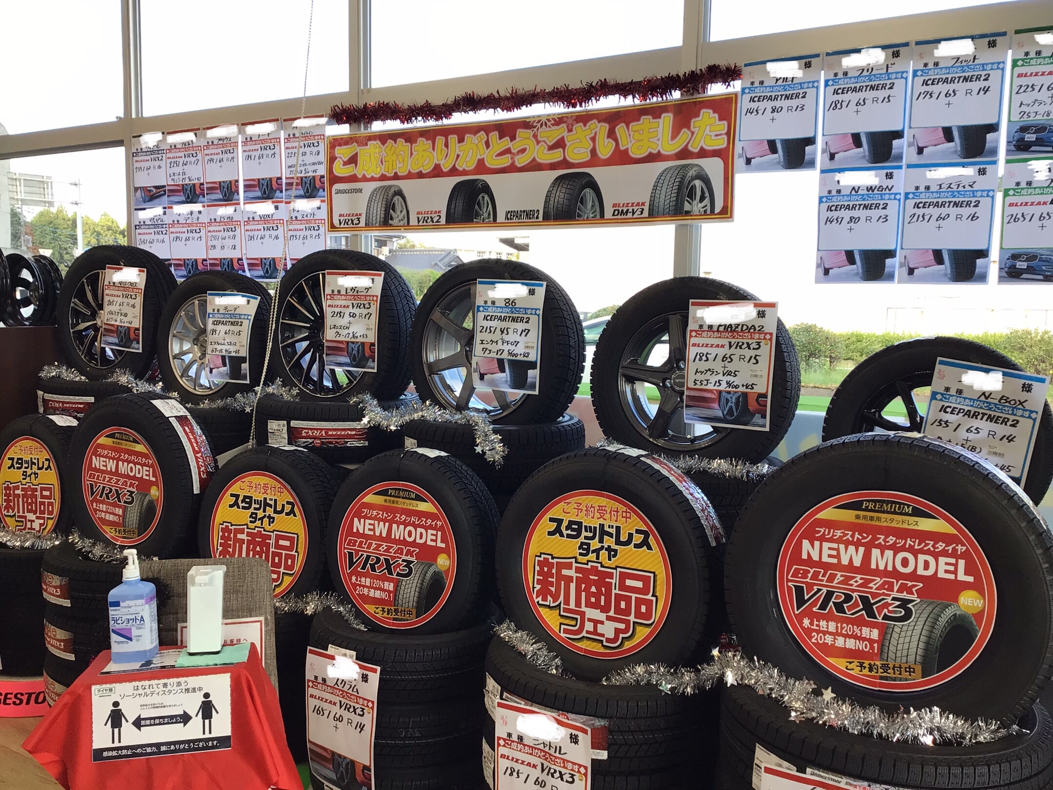 ご予約ありがとうございます! ポスト 2021年10月18日 当店入り口に、ご予約いただいたスタッドレスタイヤの一部を展示させていただいております。本格的にシーズンに入ると在庫の手配がつかなくなってしまう場合もございますので、早めの準備・ご予約がオススメです! 今の時期でしたら在庫はたくさんありますので、ぜひ一度ご来店くださいね。 担当:植田