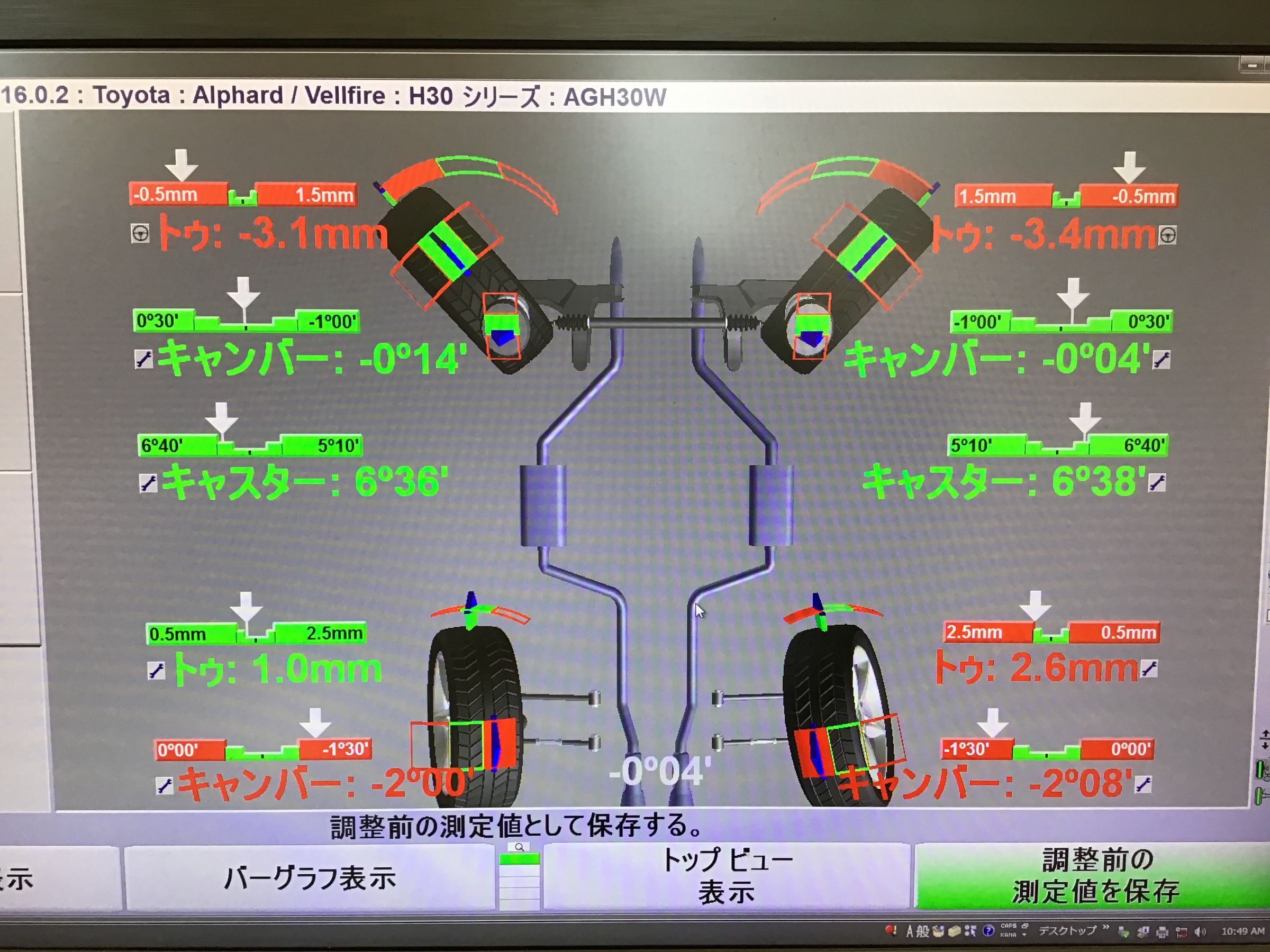こちらのヴェルファイアは前後のトゥ調整が出来ます。