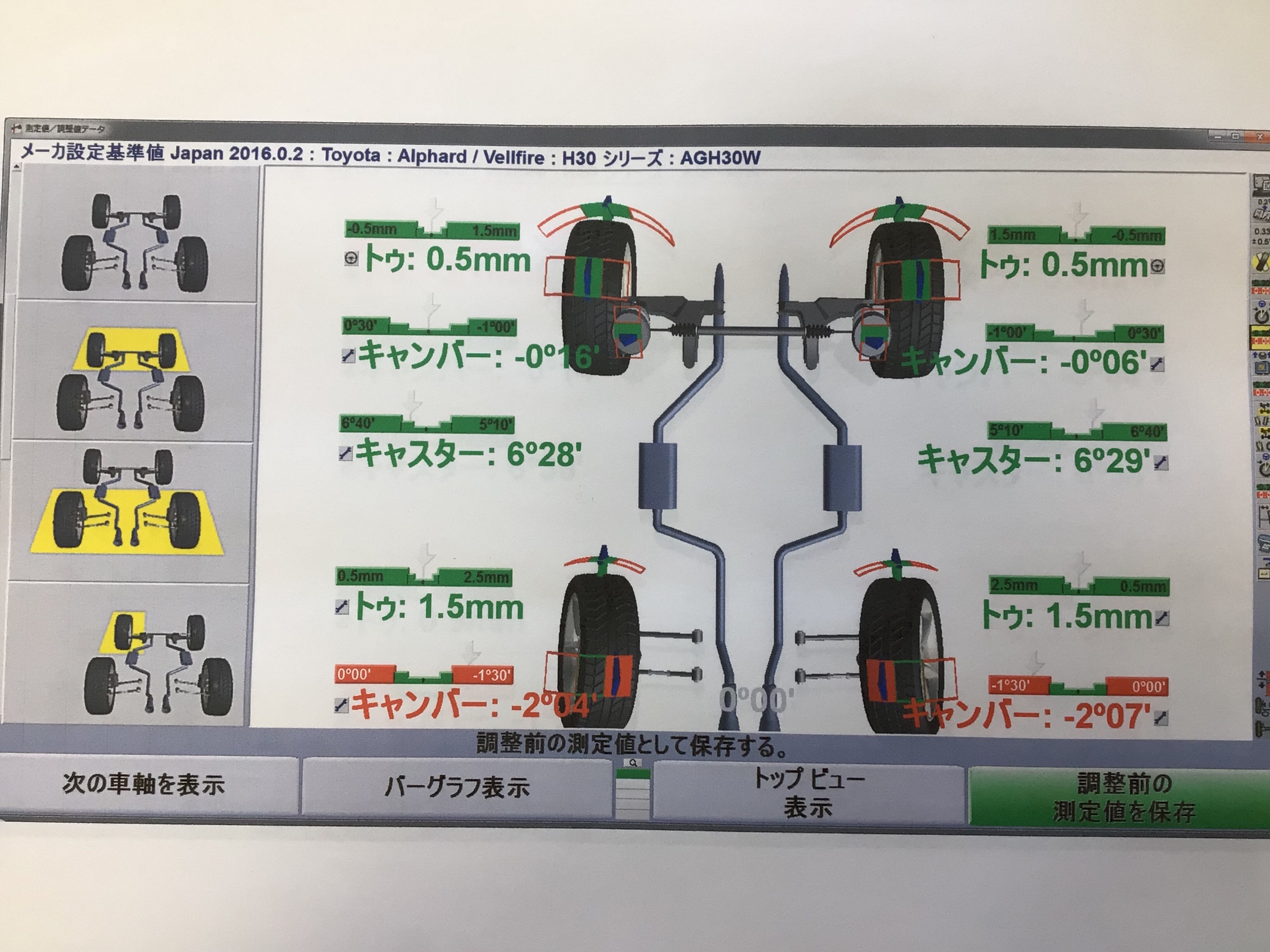 センサーを取付て今のアライメントの状態を測定致します。