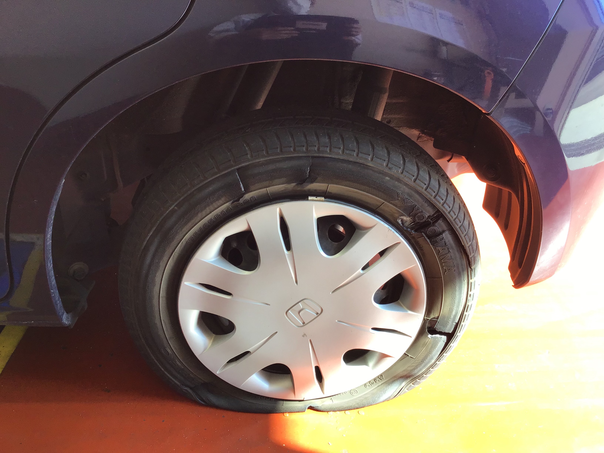 こちらのフィットはパンクをしてしまったという事でタイヤ交換です。