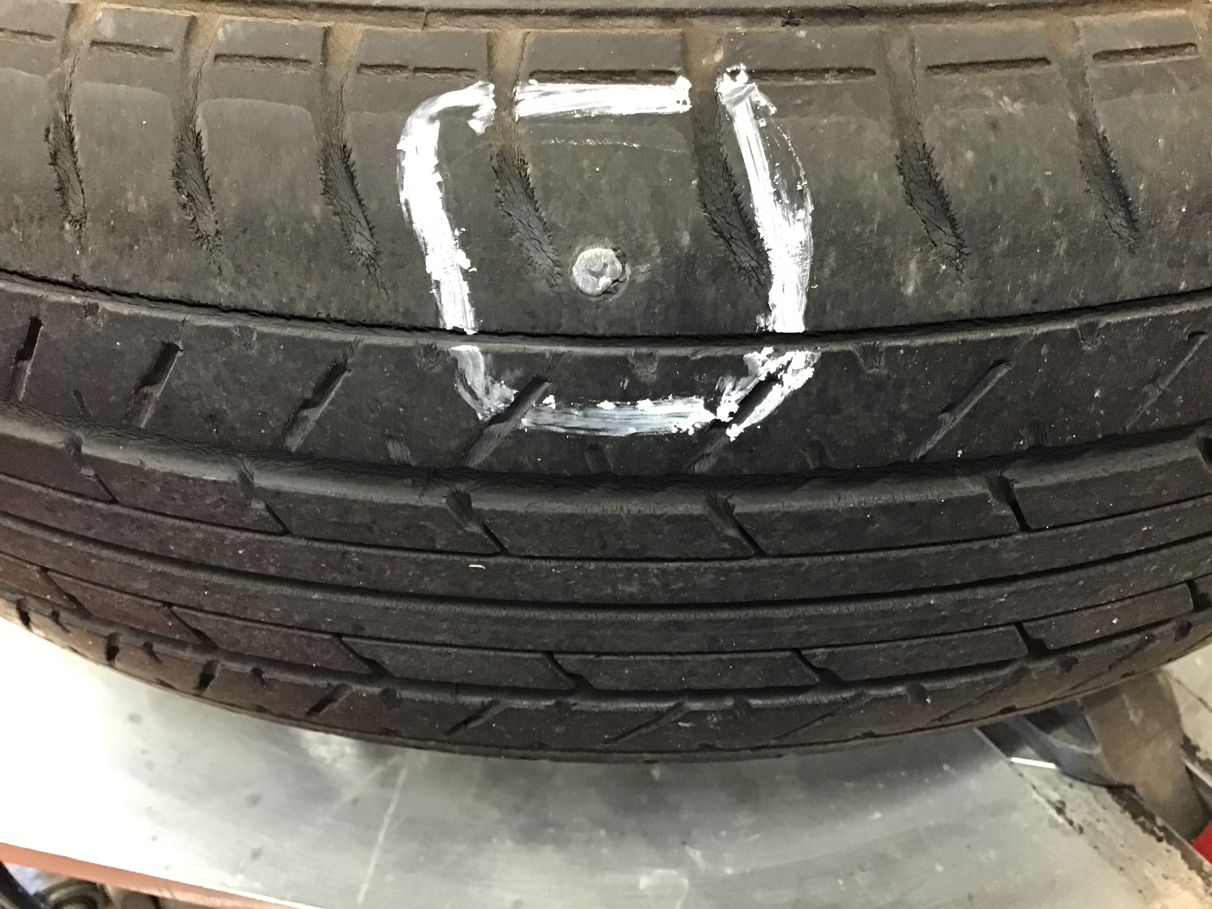 パンクしたタイヤを見てみると