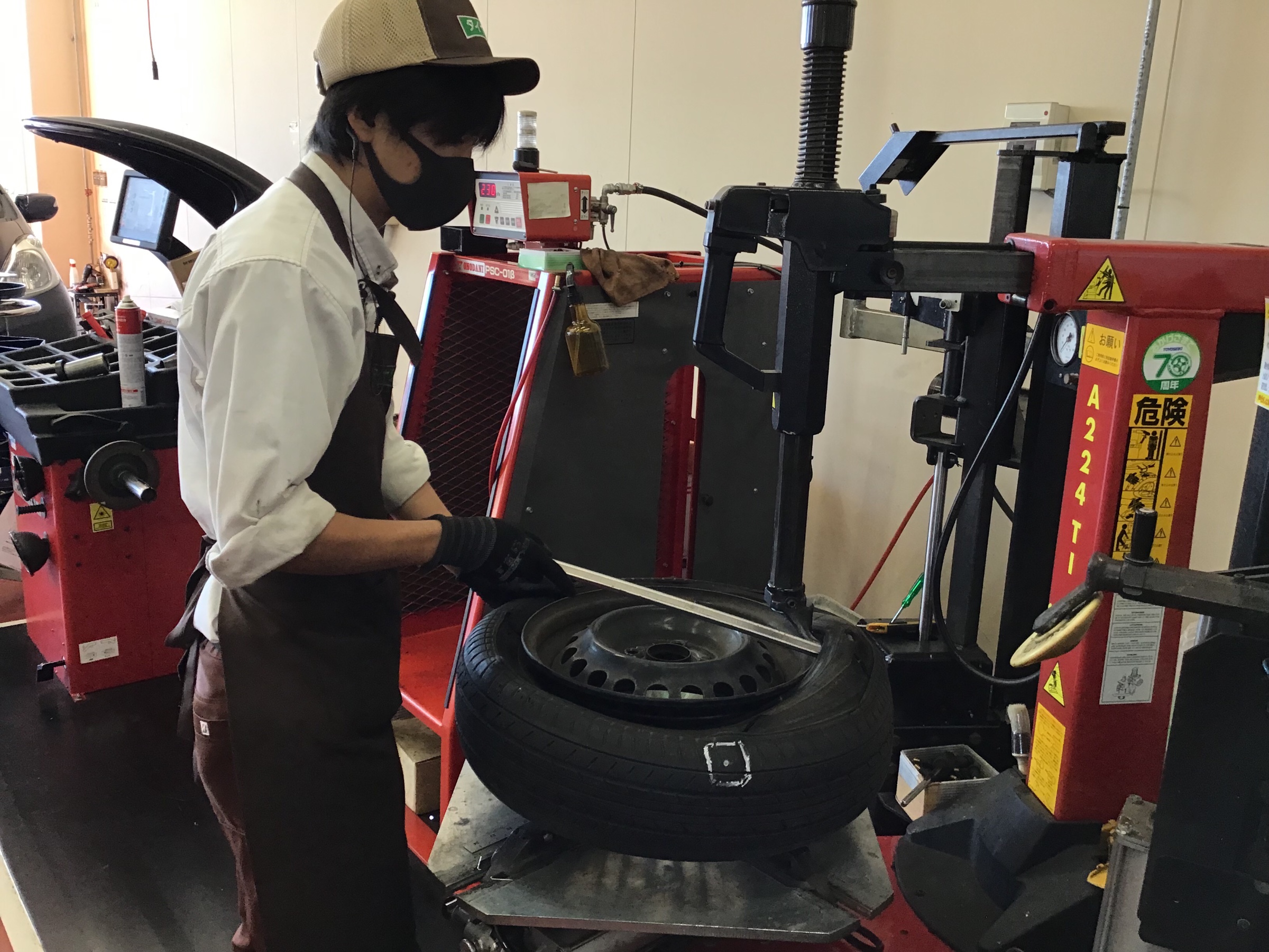 古いタイヤを取り外し作業を行っていきます。