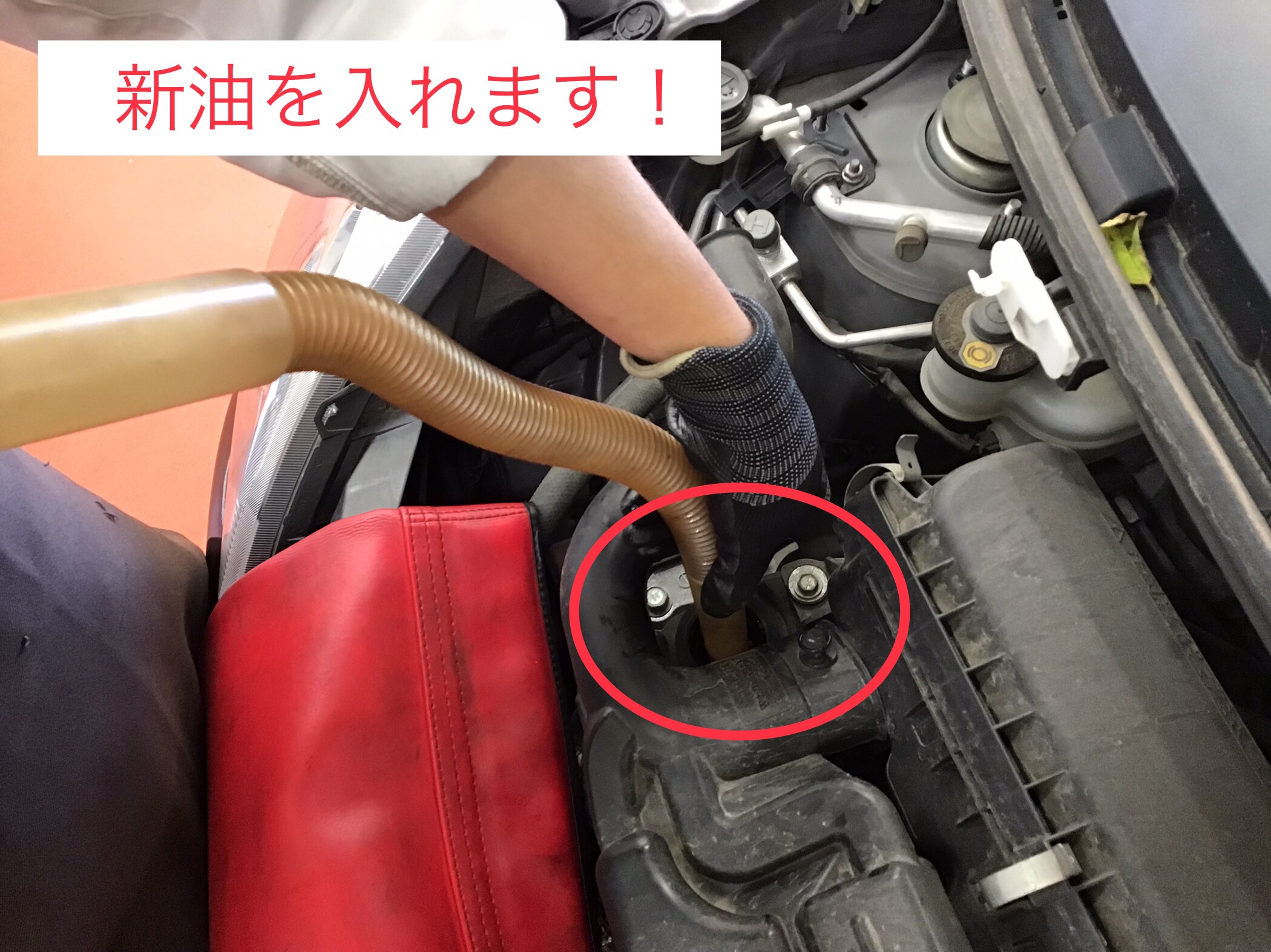 オイルの吸い上げが完了したら新油を入れます!