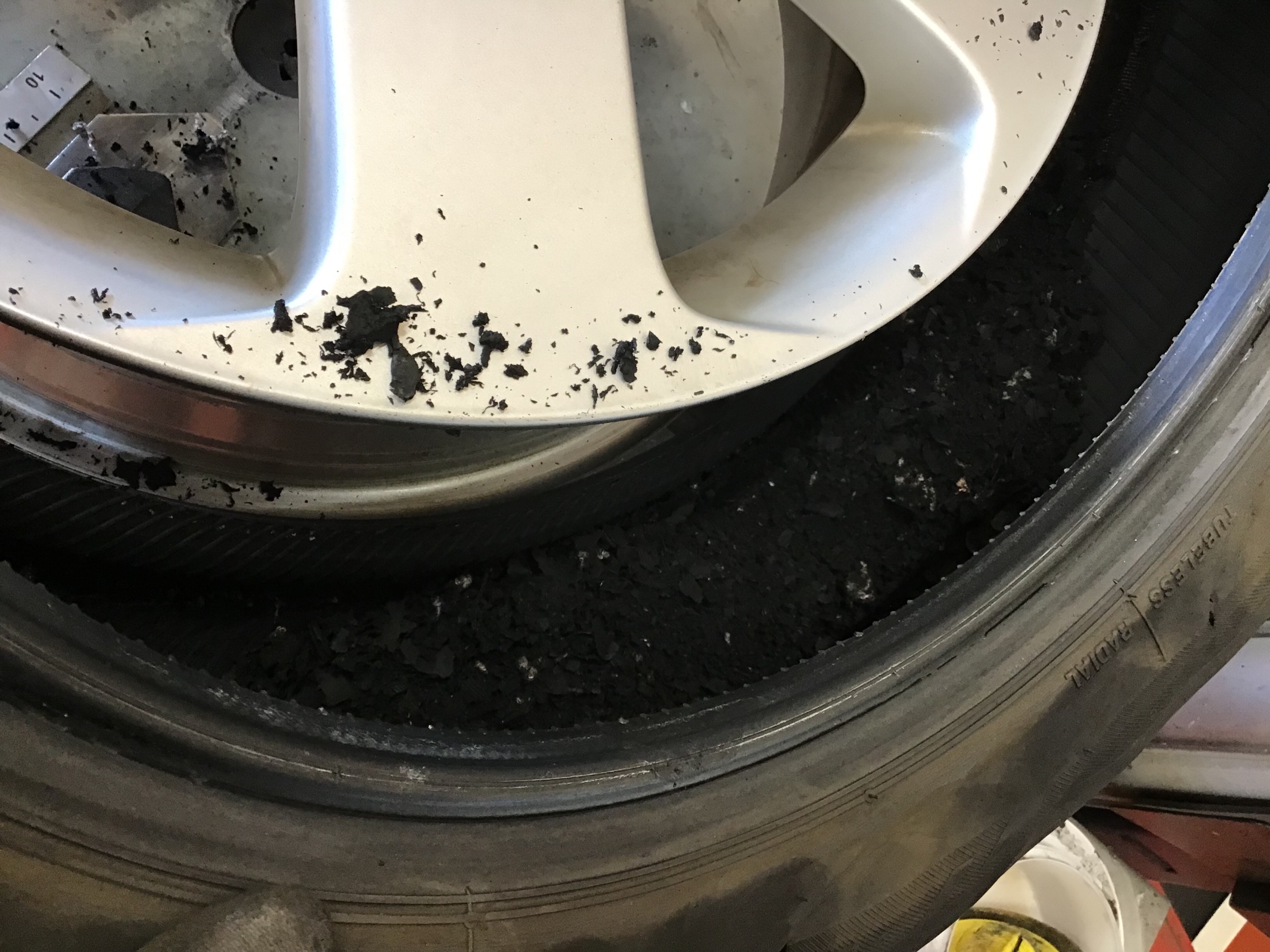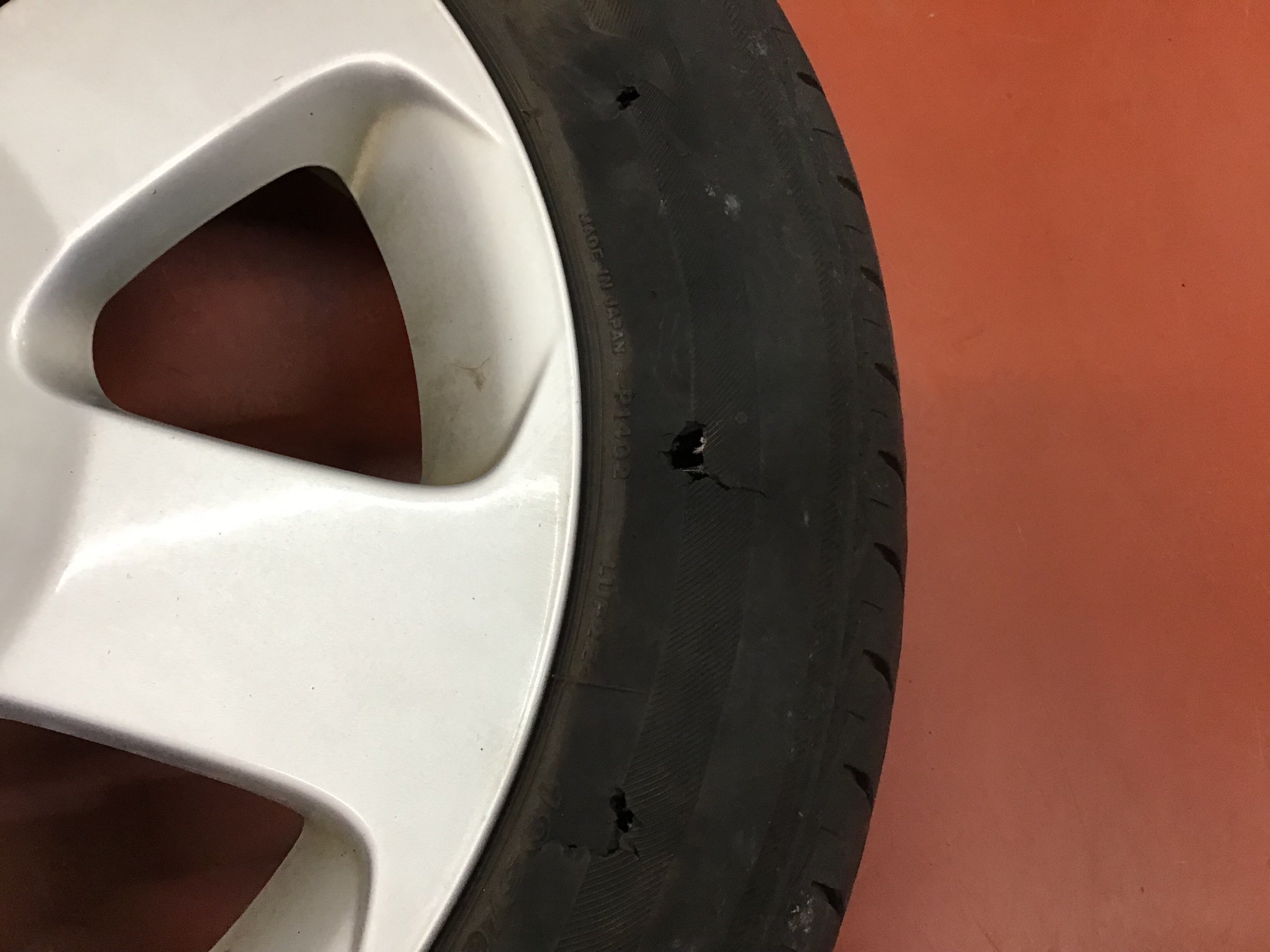 タイヤの側面に穴がたくさん開いておりました。