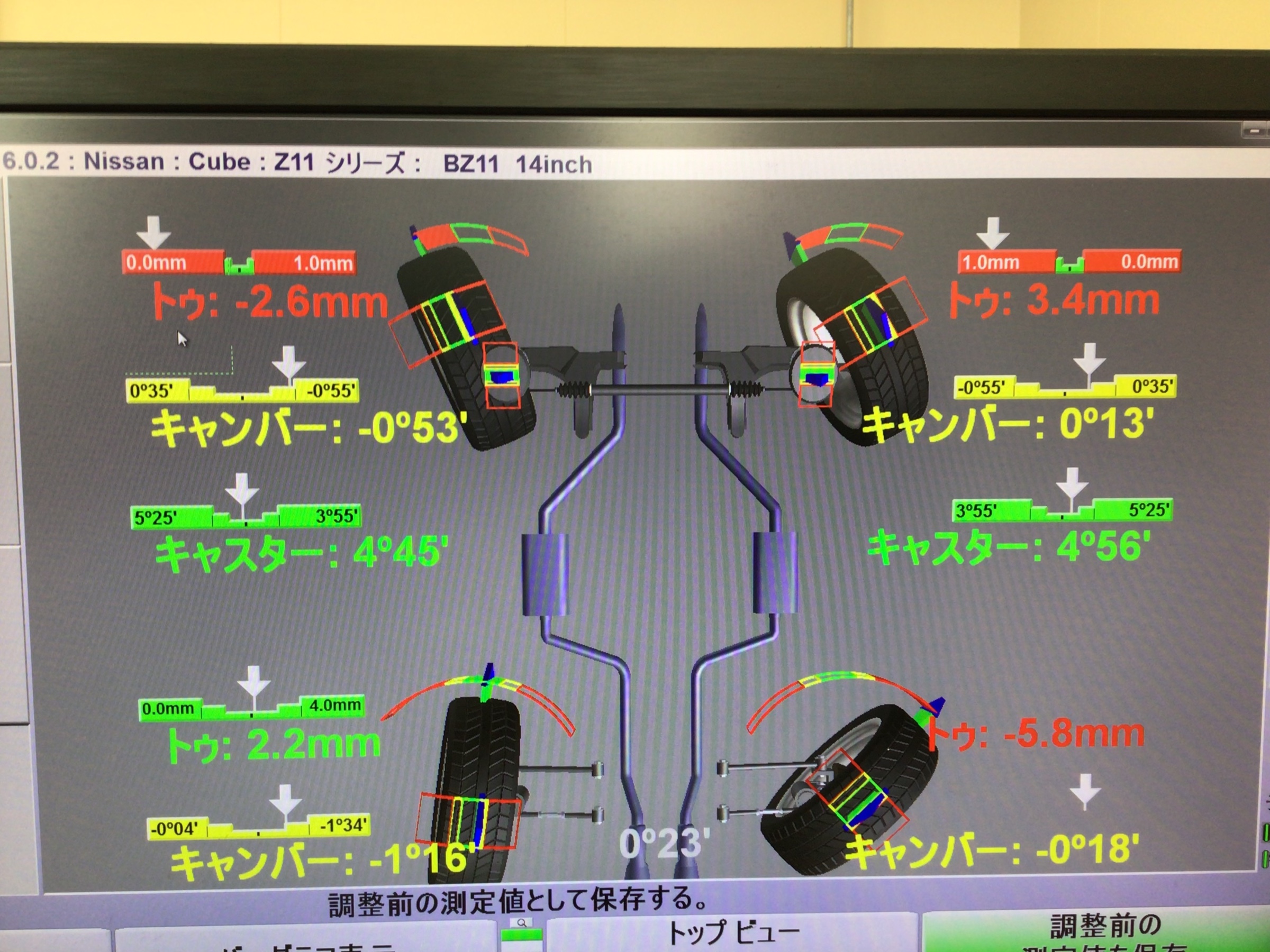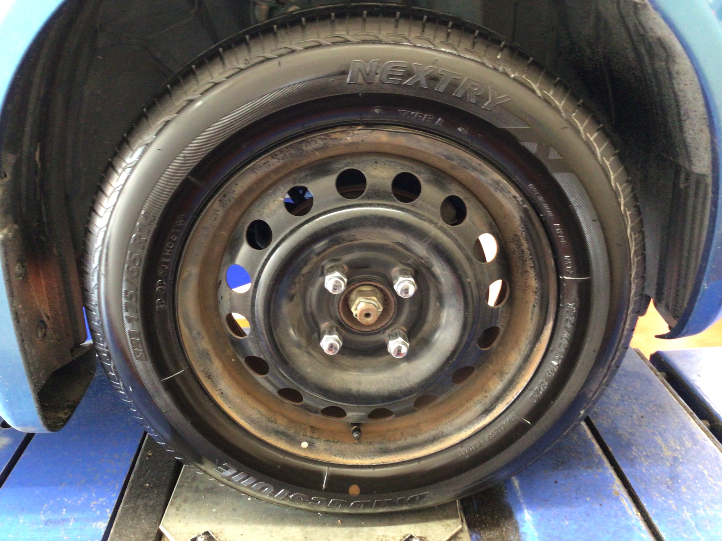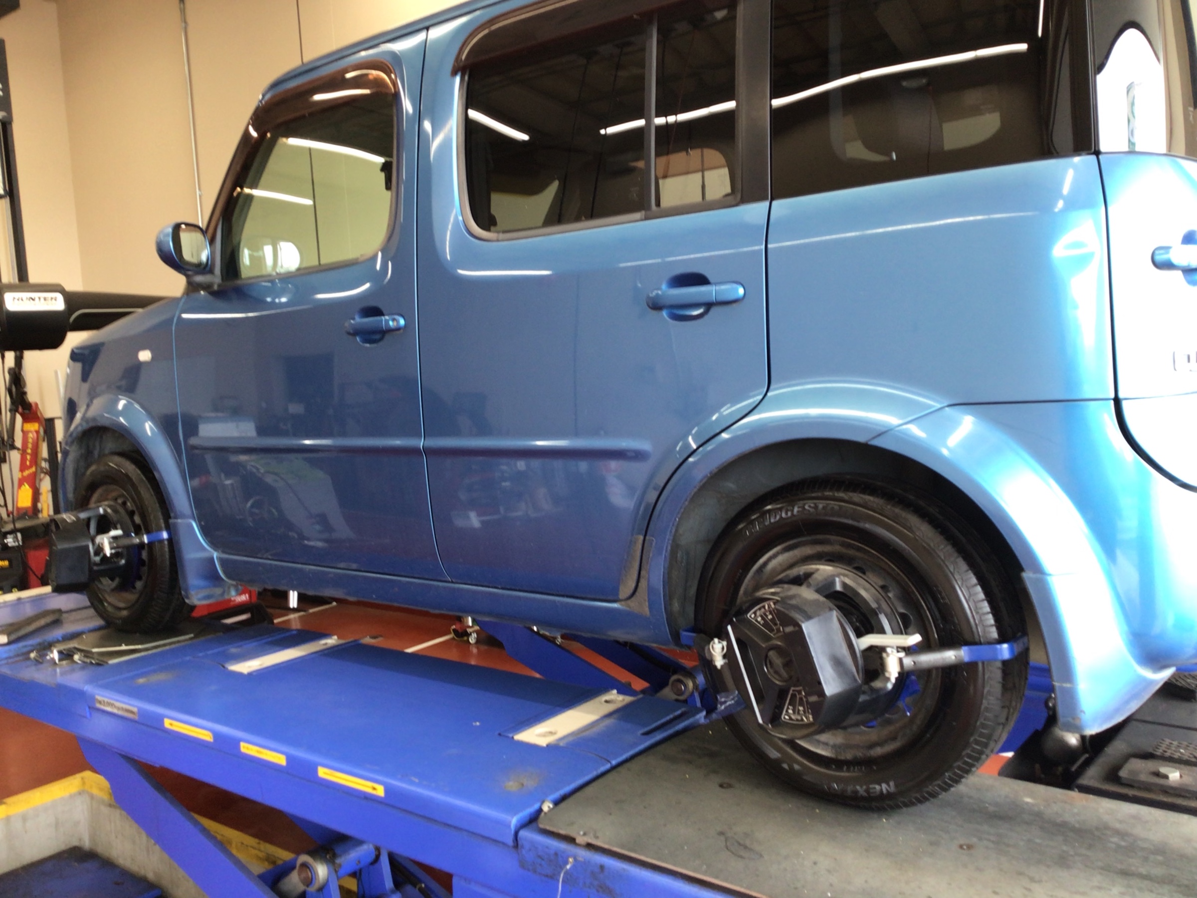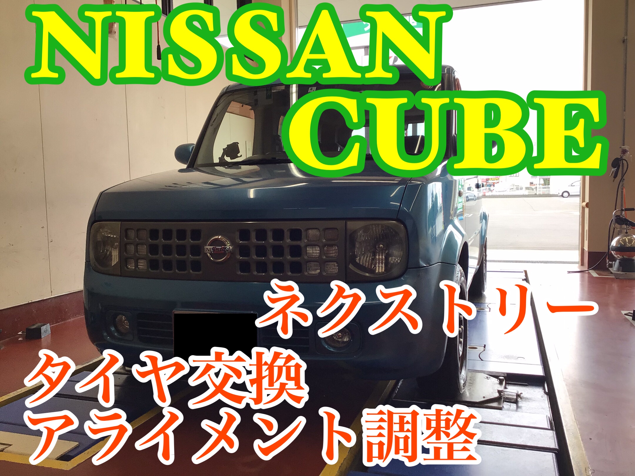 日産・キューブ〜タイヤ交換(ネクストリー)+アライメント調整〜
