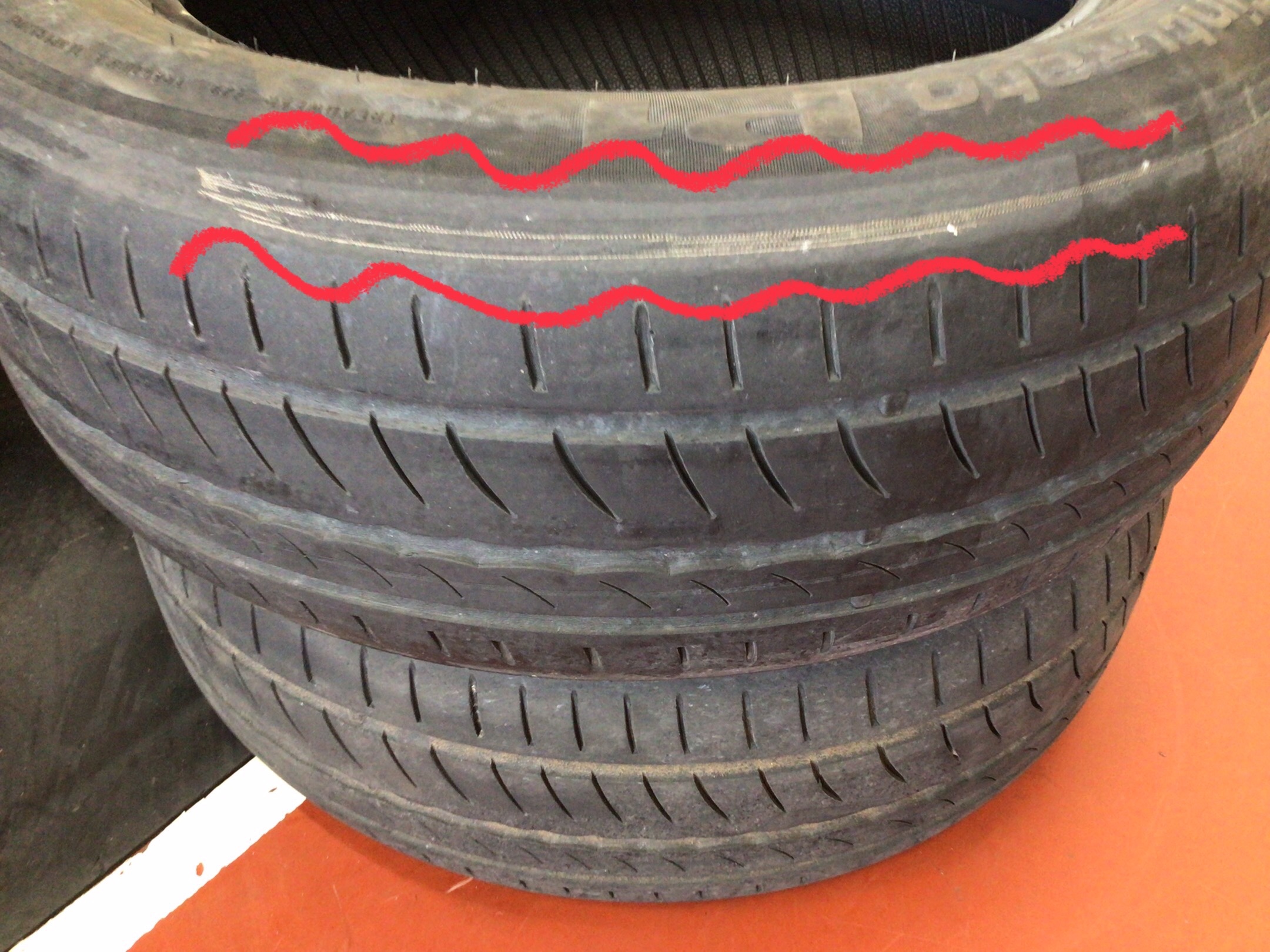 タイヤを見てもらうと、ワイヤーが出ているのが分かります。