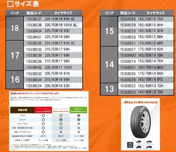 ブリヂストン「オールシーズンタイヤ」マルチウェザー