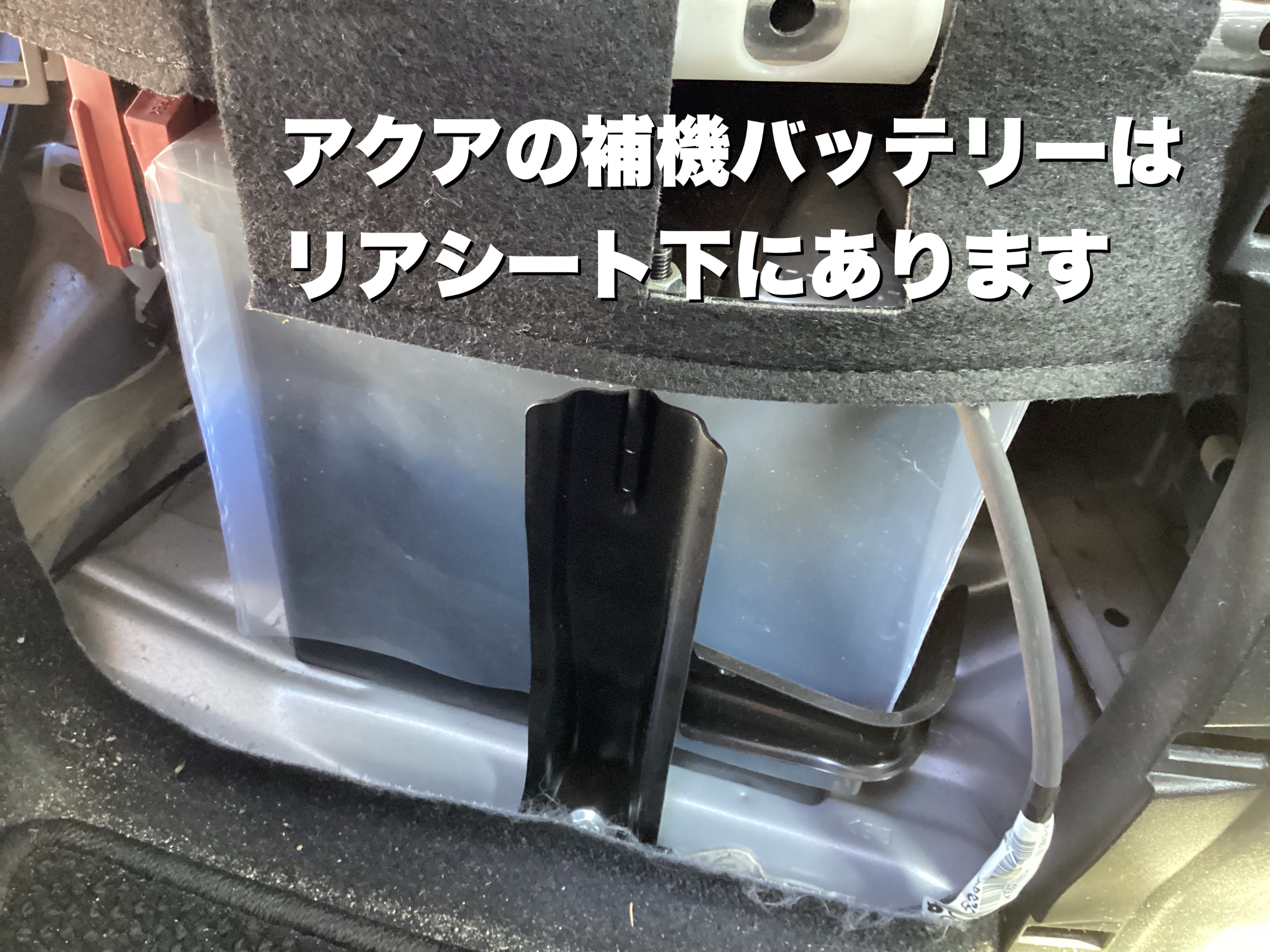 ちなみに補機バッテリーはリアシートの下の搭載されています。