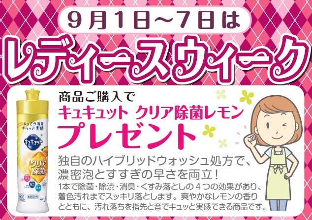 今月のレディースWEEK!! ポスト 2018年9月1日 こんにちは。 9月1日から7日までレディースWEEKです^^ 商品ご購入で粗品プレゼント(^0^) お盆時期などお出掛けした後のメンテナンスはしてますか? 無料安全点検実施中です!! ご来店お待ちしております^^