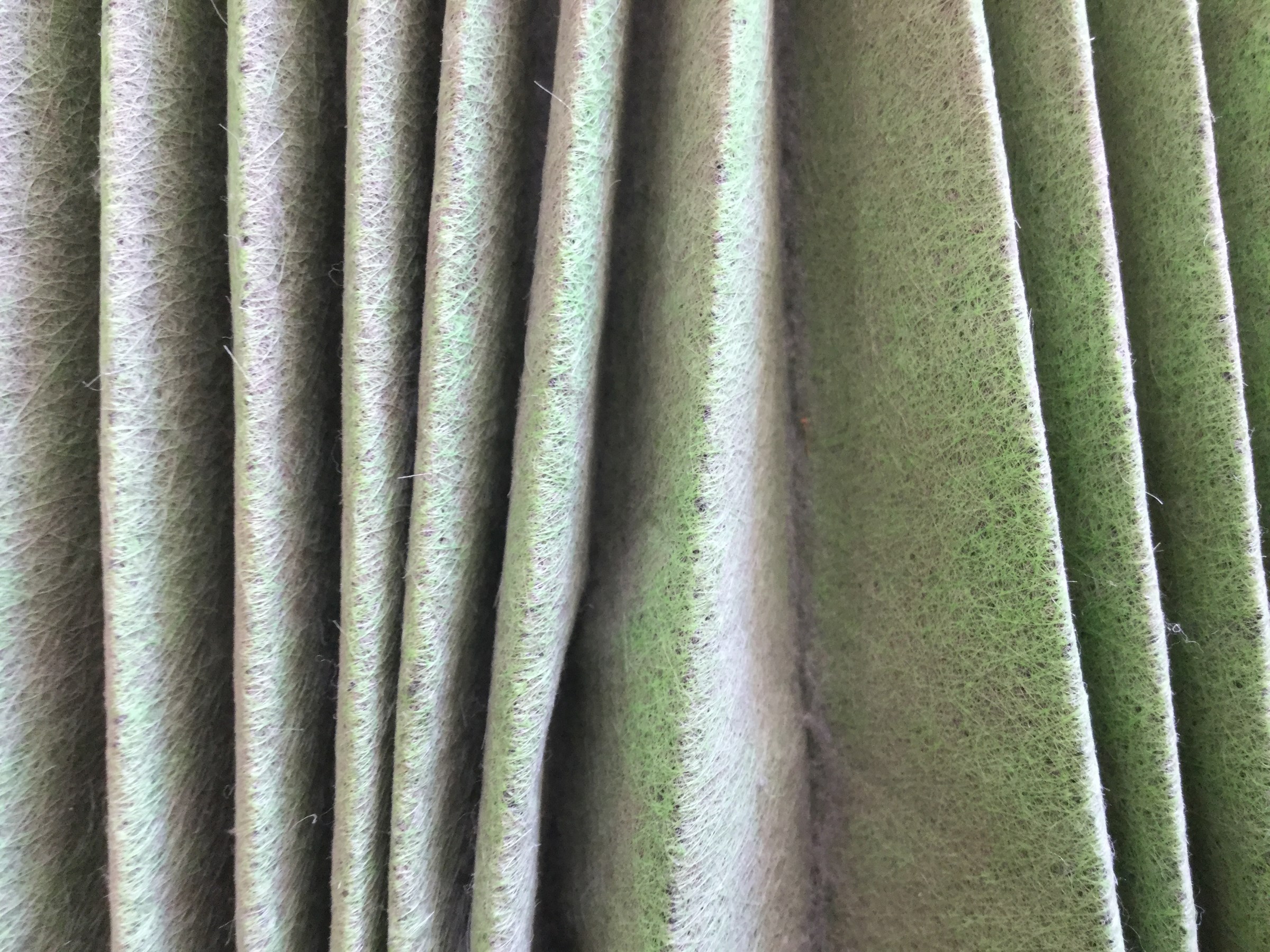 交換前のエアコンフィルターはホコリがビッシリ!!