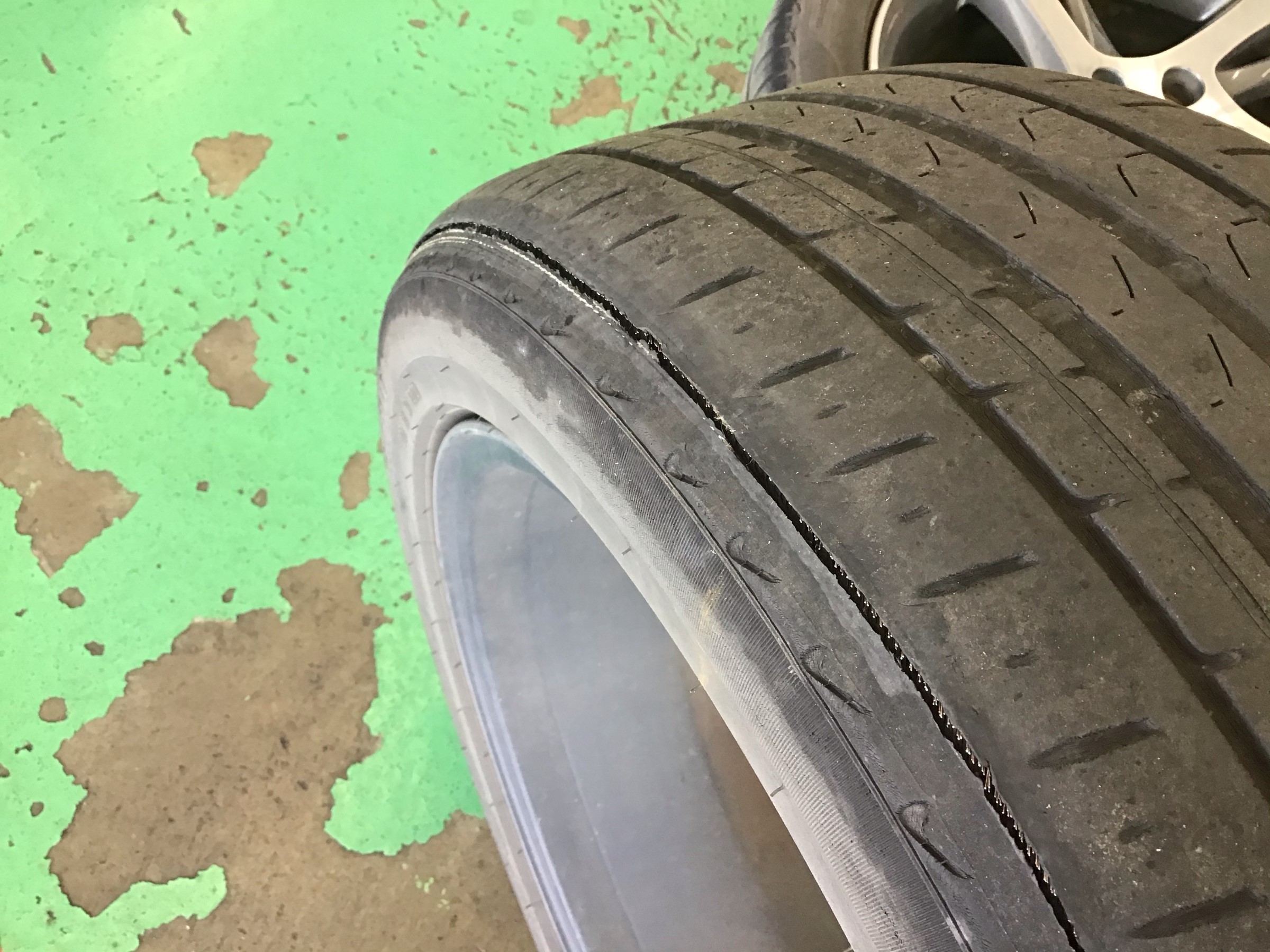 バーストしたタイヤです。とんでもない内減りですが覗き込まないと