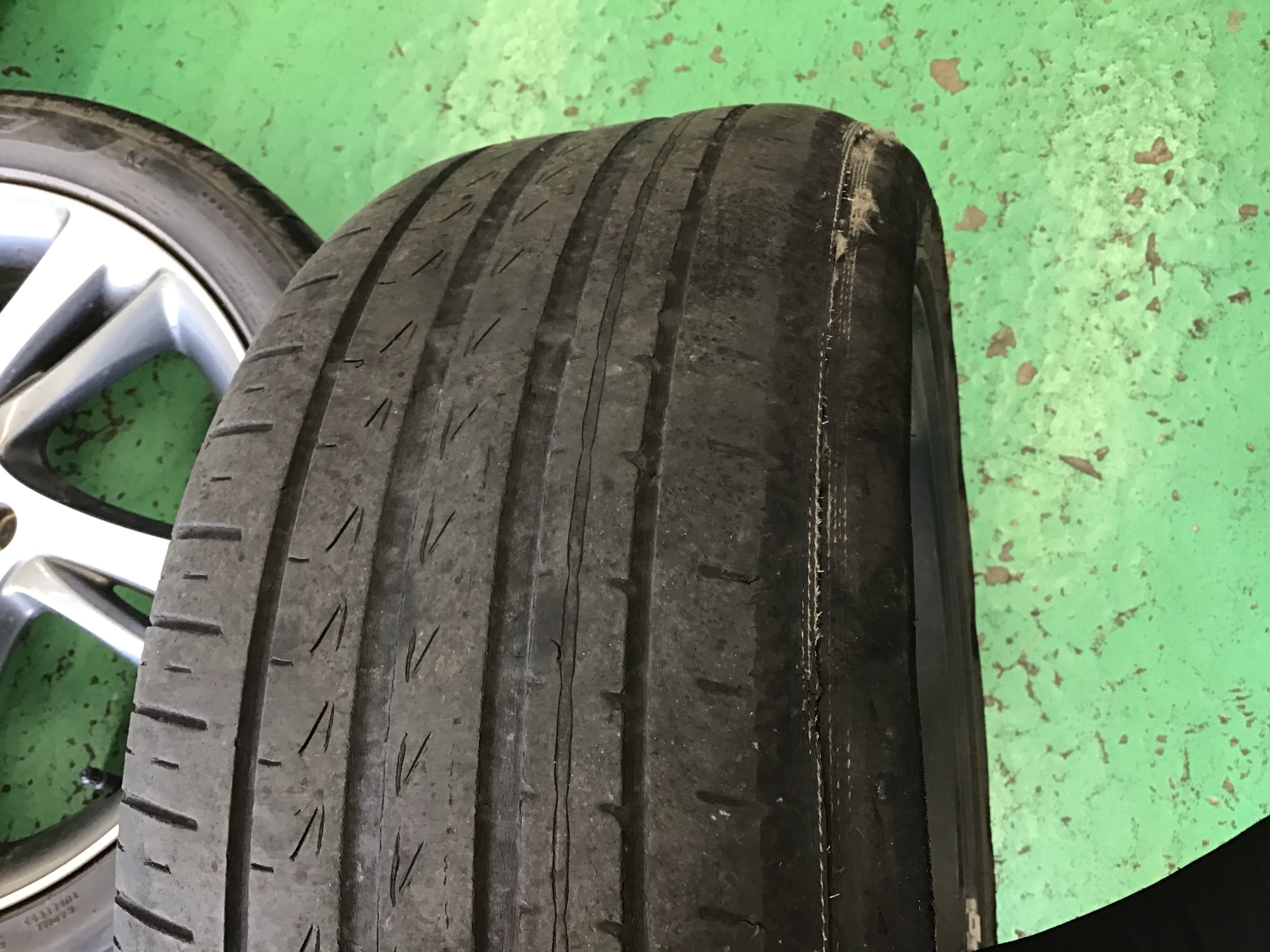 よく耐えましたね!ちなみに新品タイヤに交換した上でアライメント調整を行いましたが