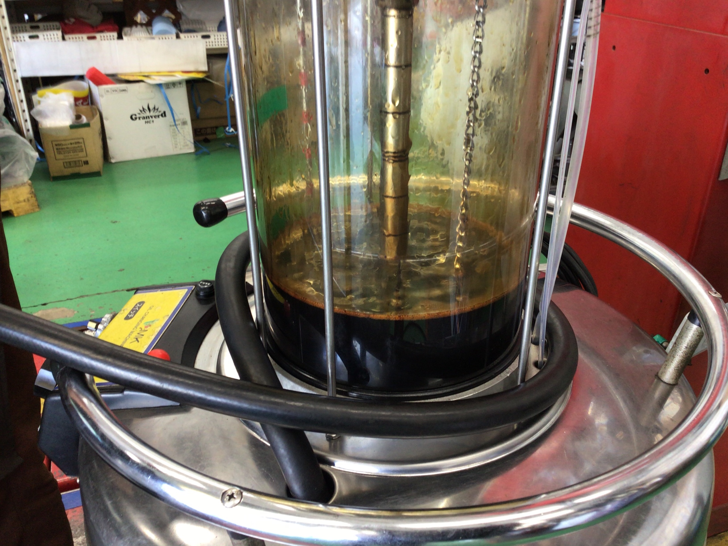 オイルを抜く専用の機械でオイルを抜いていきます。