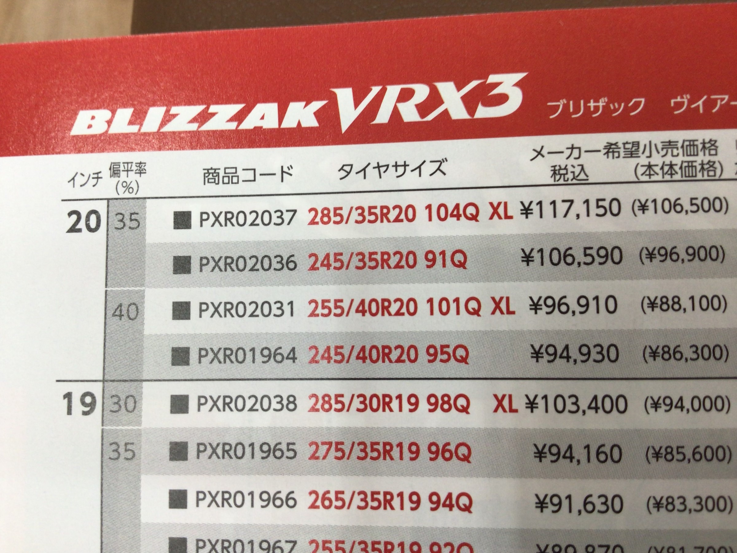 VRX3に「255/40R20」と「285/35R20」がラインナップされているではないですか!