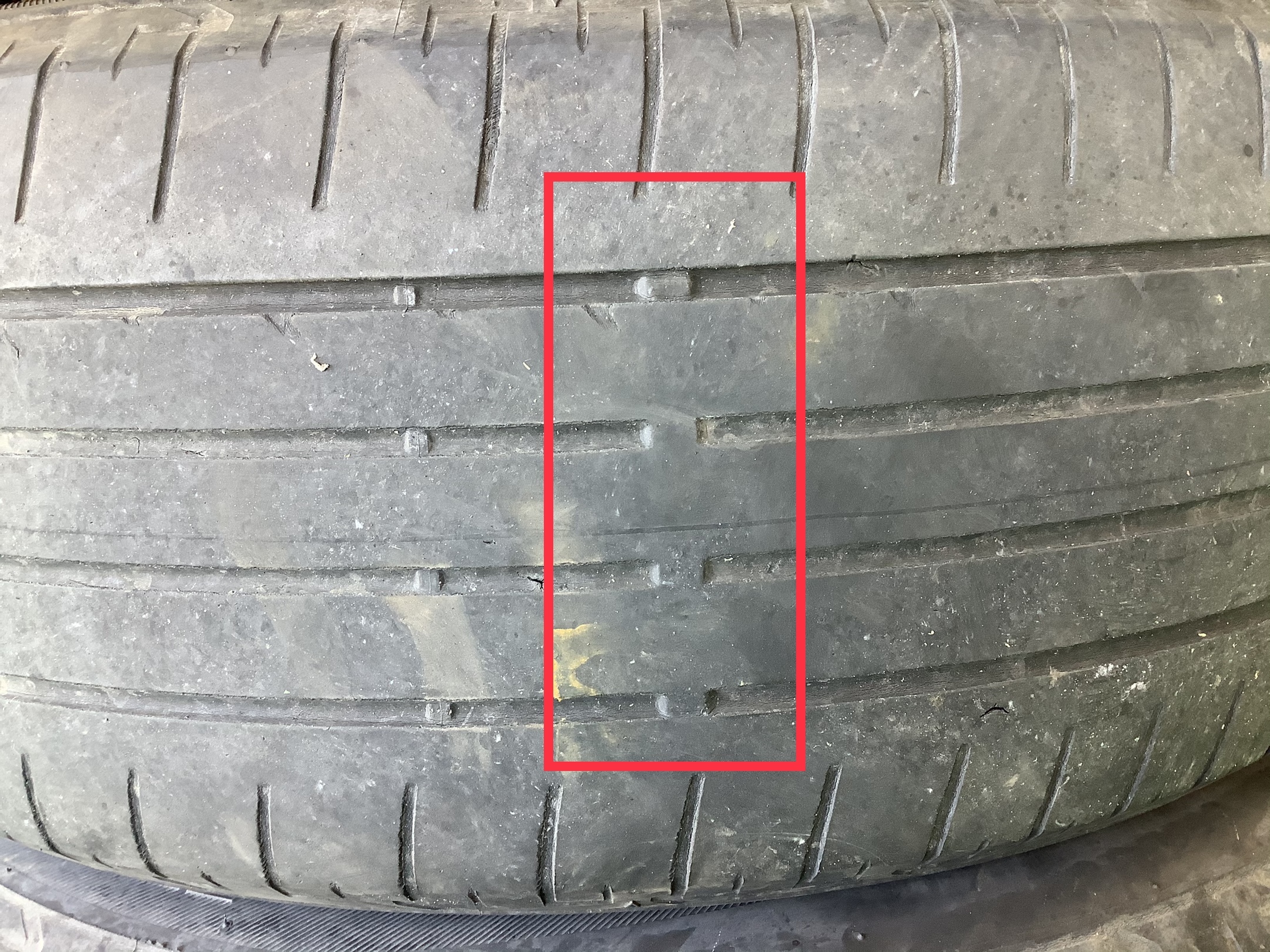外したタイヤですが溝は少なくスリップサインが出ていました。