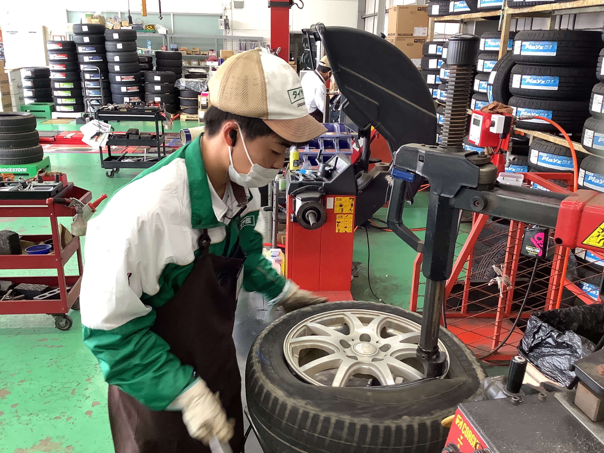 古いタイヤを外し、新しいタイヤを取付けていきます!