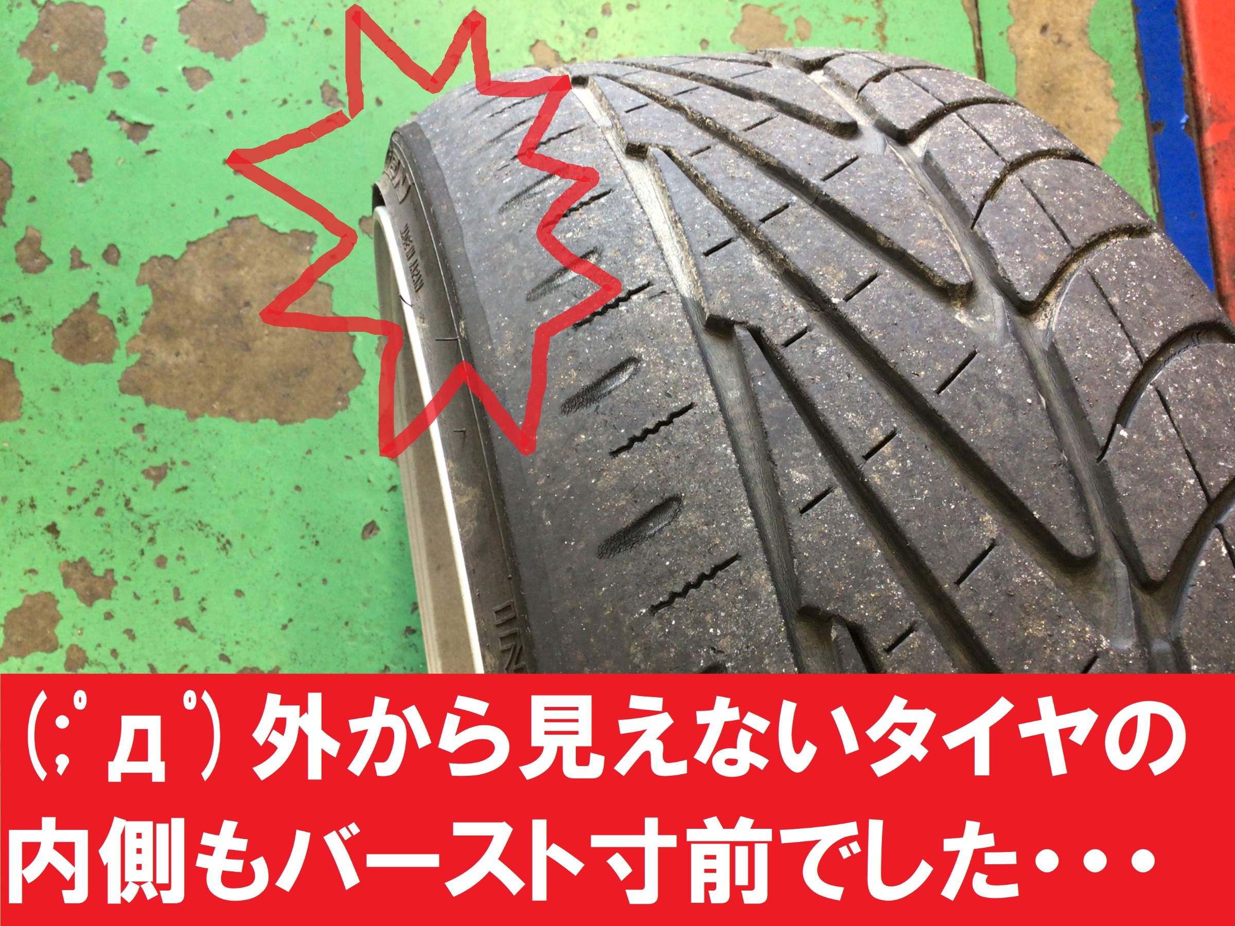更に外から見えなかったタイヤの内側はこんな事に・・・この状態で気付かずに
