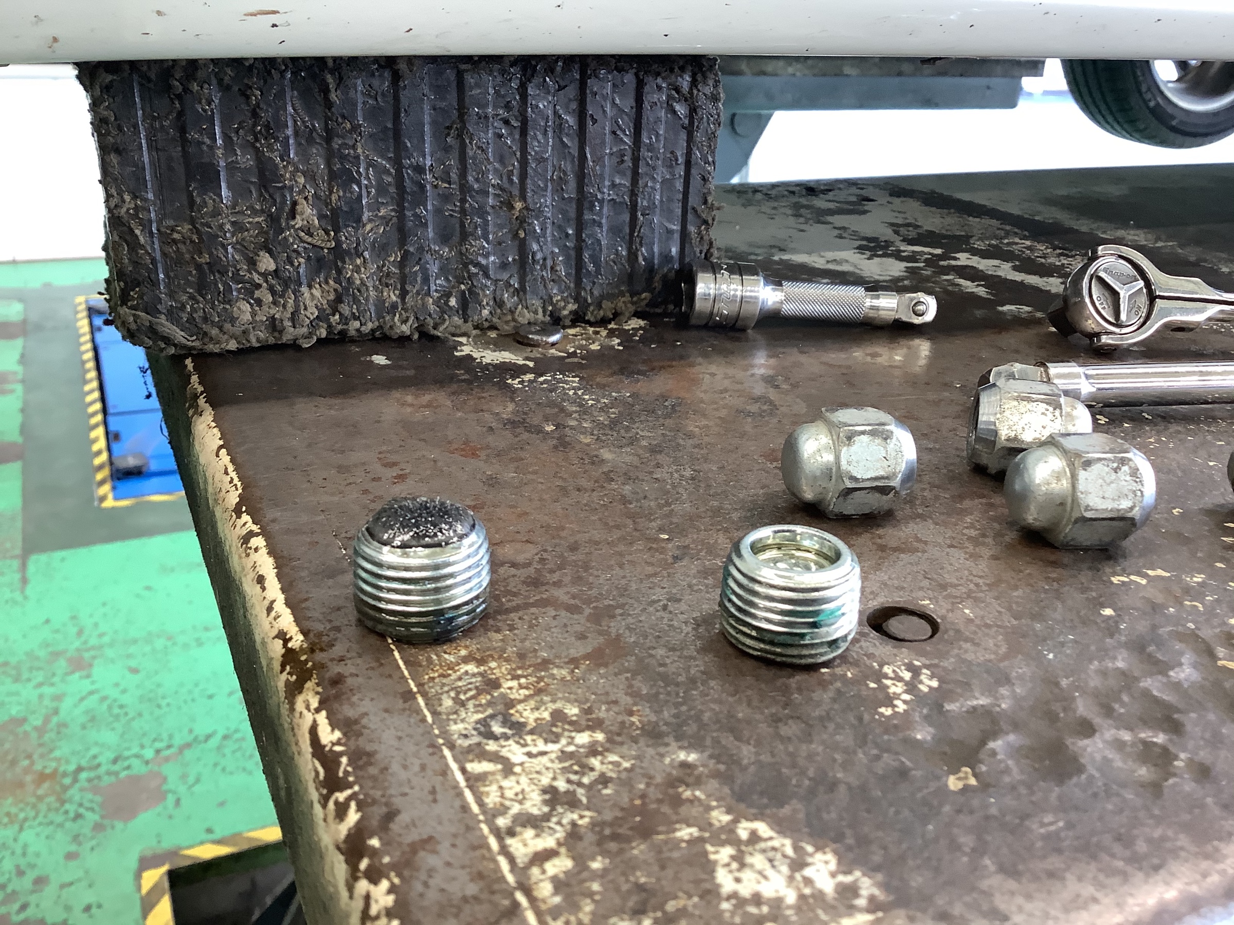 ドレンボルトの先端には磁石になっており、かなり鉄粉がついて