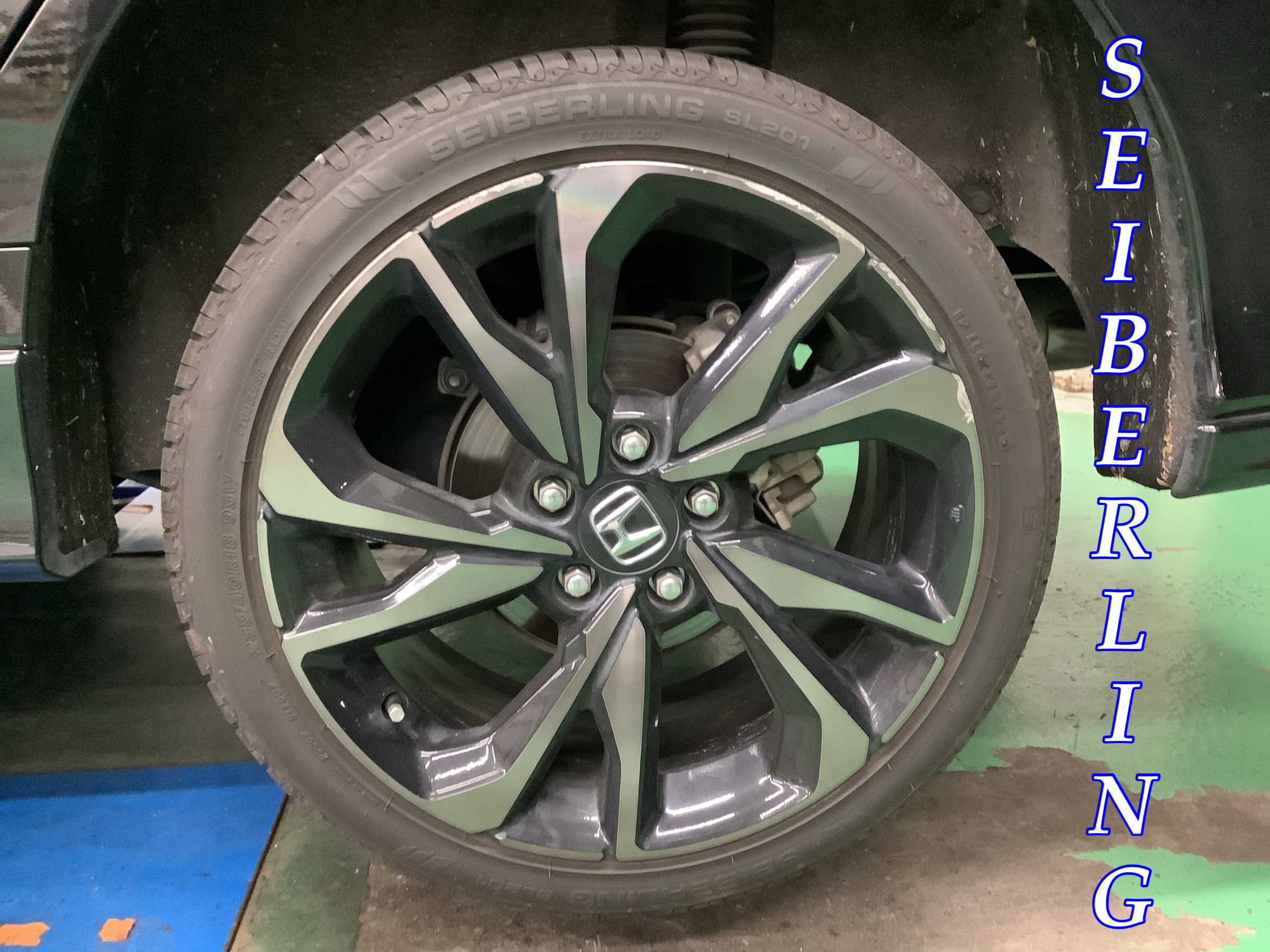 夏タイヤを外していきます。ホイールはシビック純正となっており、