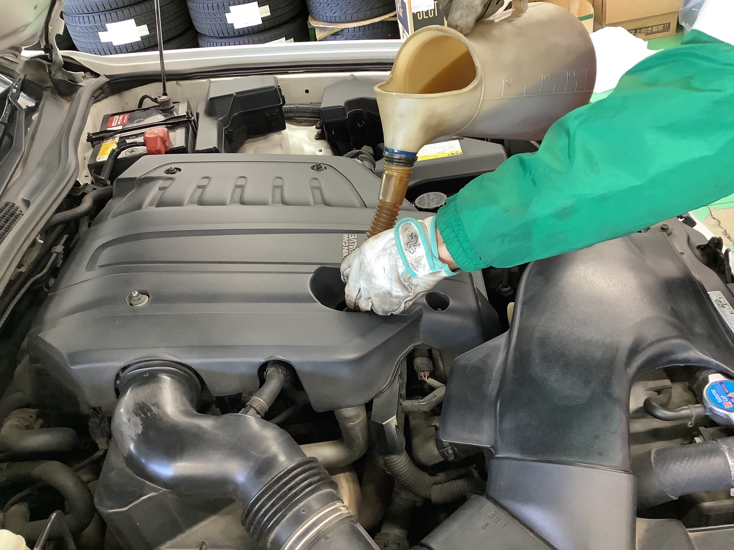 オイルを入れていきます!その後にオイル漏れが無いか確認し
