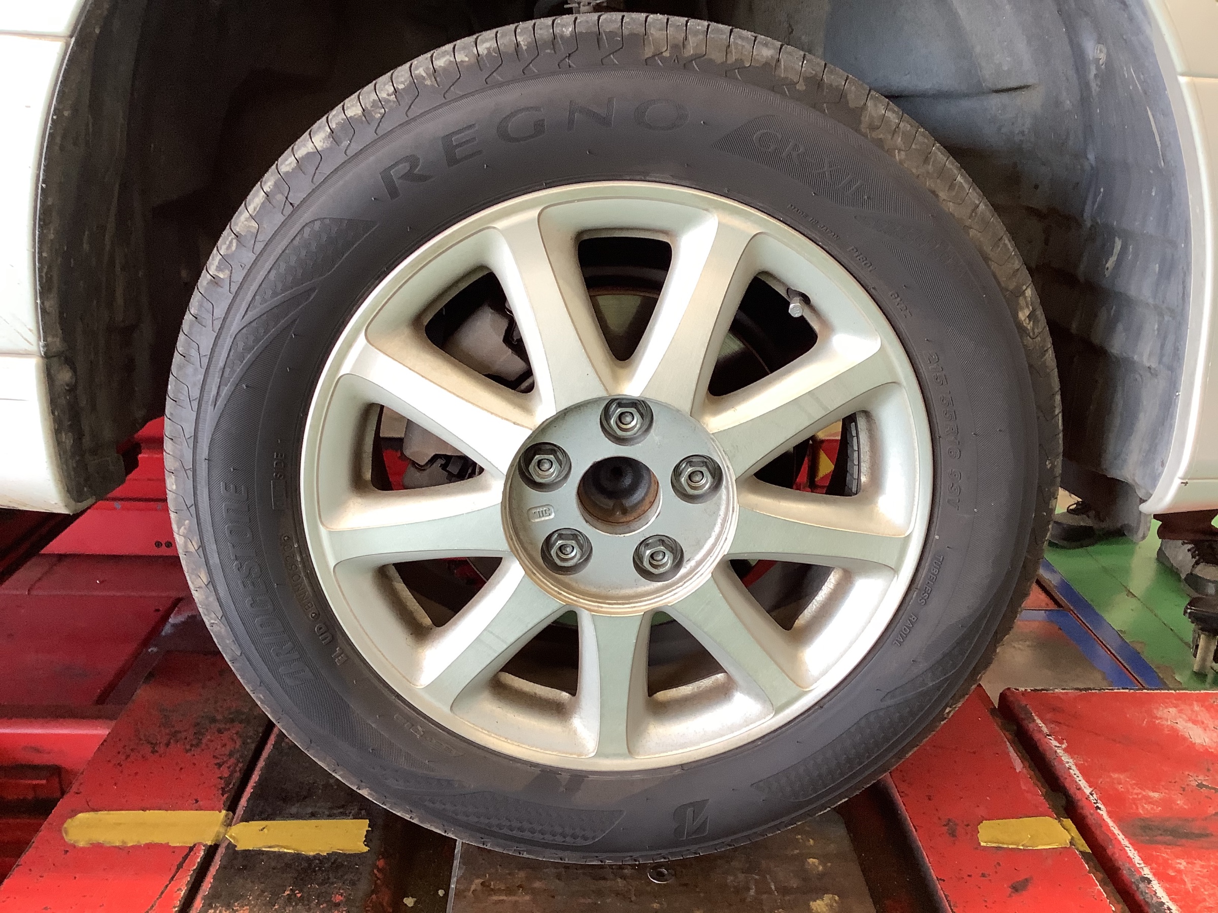 夏タイヤを外していきます!タイヤは「REGNO GR-XII」です。