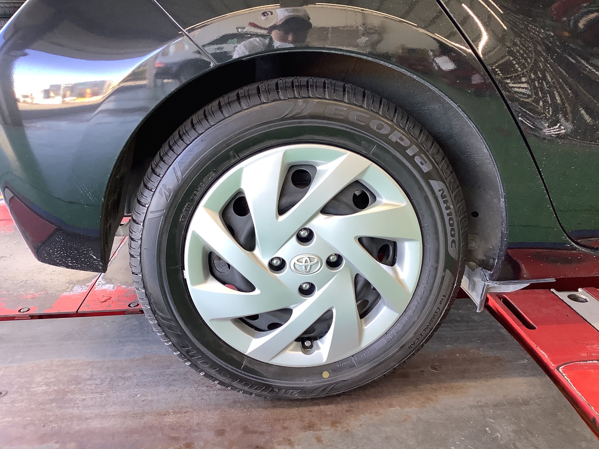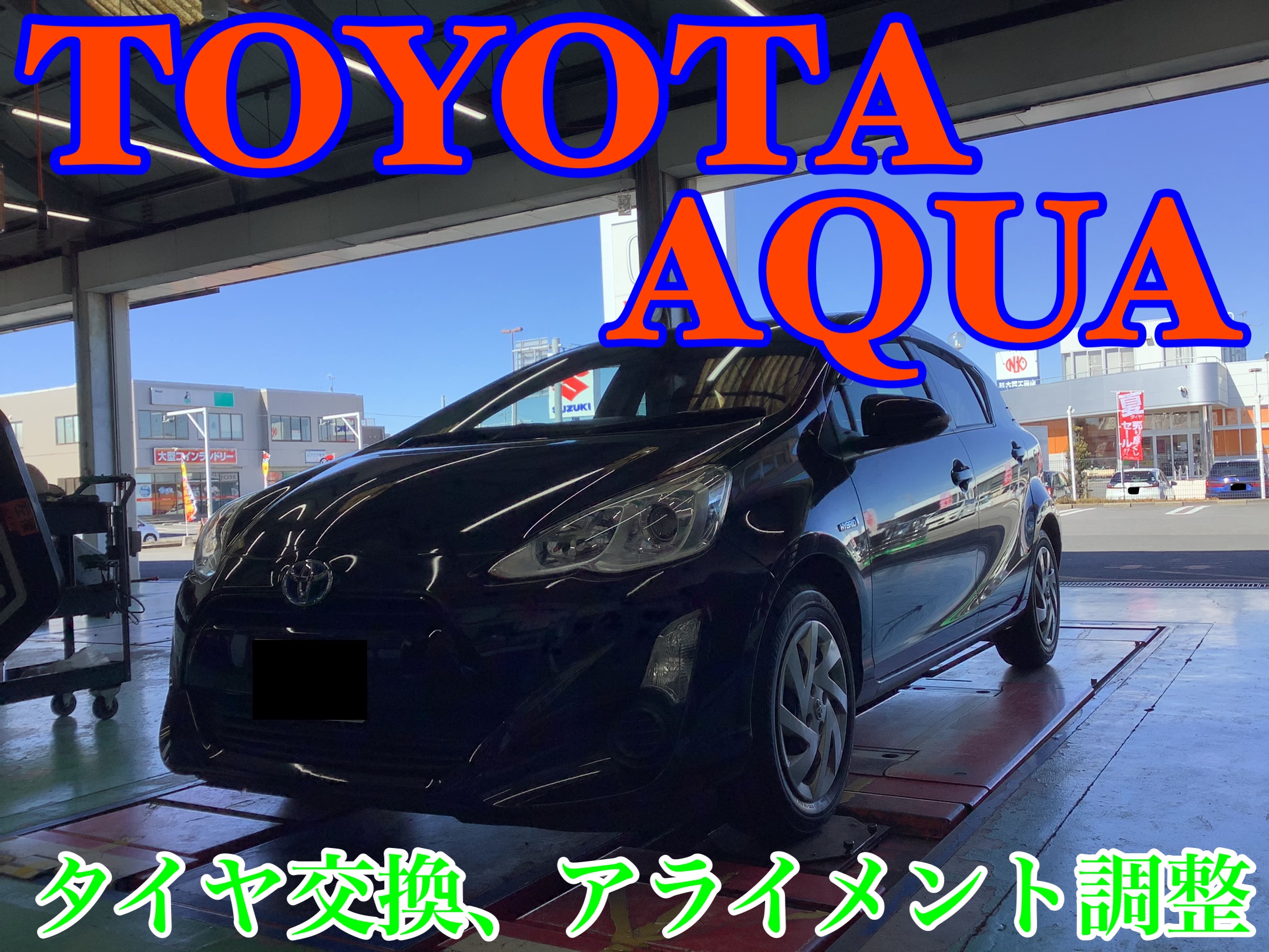 今回作業したお車は「トヨタ・アクア」のタイヤ交換、アライメント